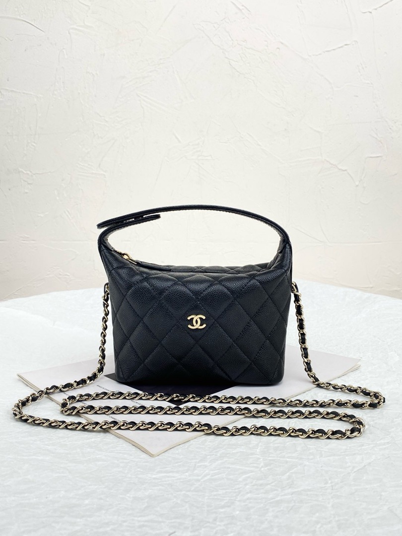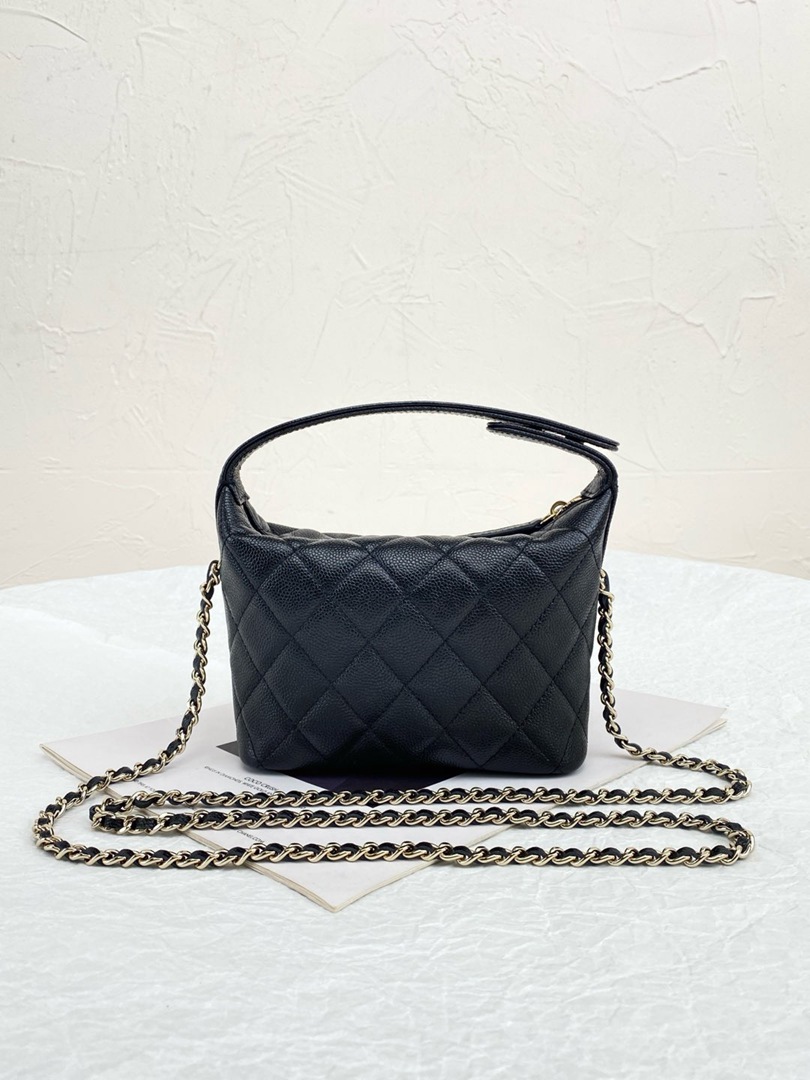 chanel 25c hobo bag black Caviar calfskin?gold hardware