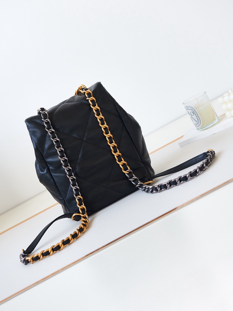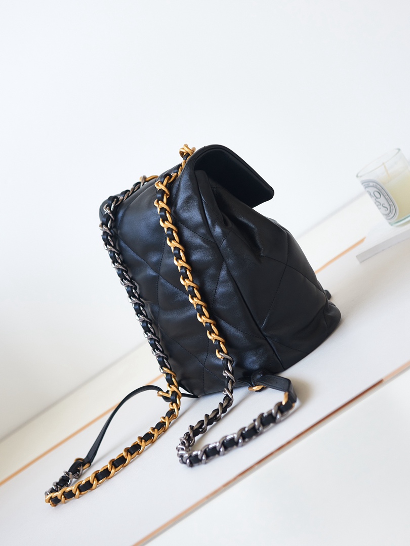 chanel 24c 19 backpack black shiny lambskin gold cc gold&sliver hardware