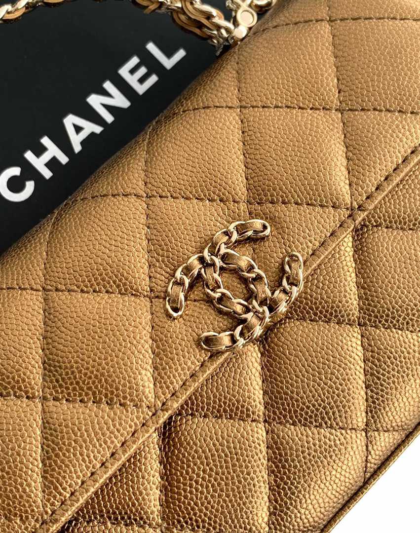 chanel 25a Cross handles cf Bronze Gold caviar calfskin gold hardware