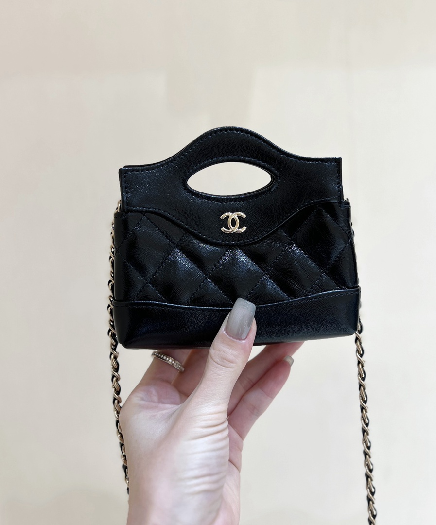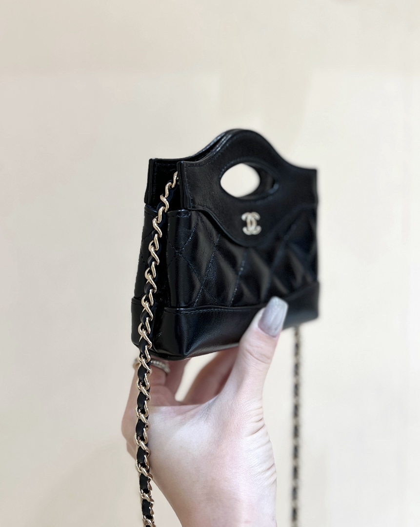 chanel 24s mini nano 31bag black shiny lambskin gold hardware small