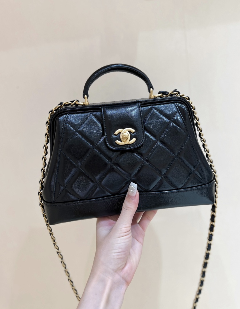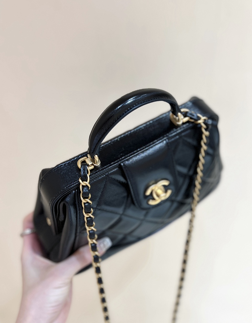 chanel 24a doctor bag black shiny lambskin gold hardware