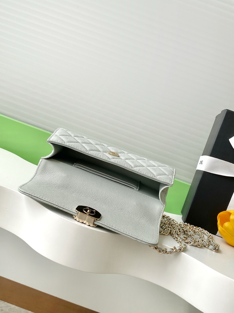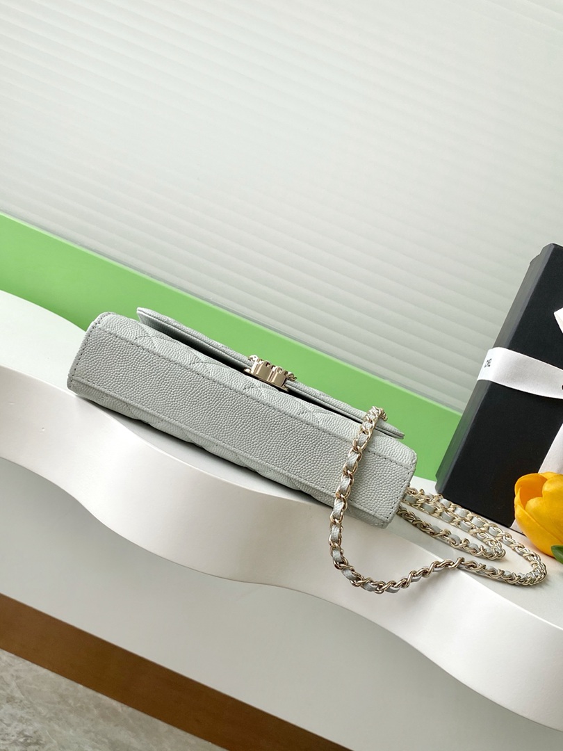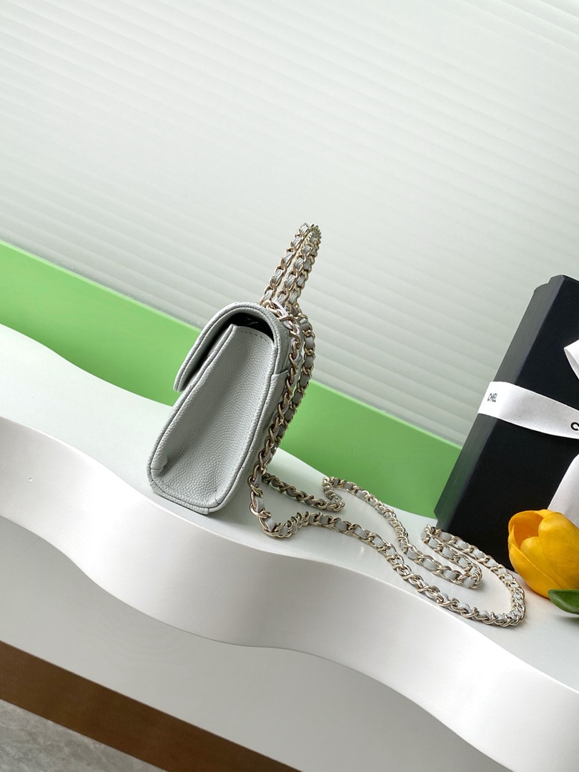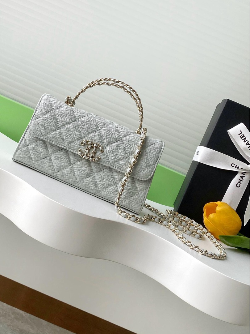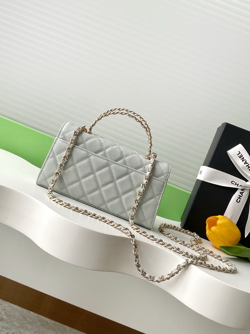 chanel 25a Cross handle horizontal kelly bag light grey grained calfskin sliver hardware