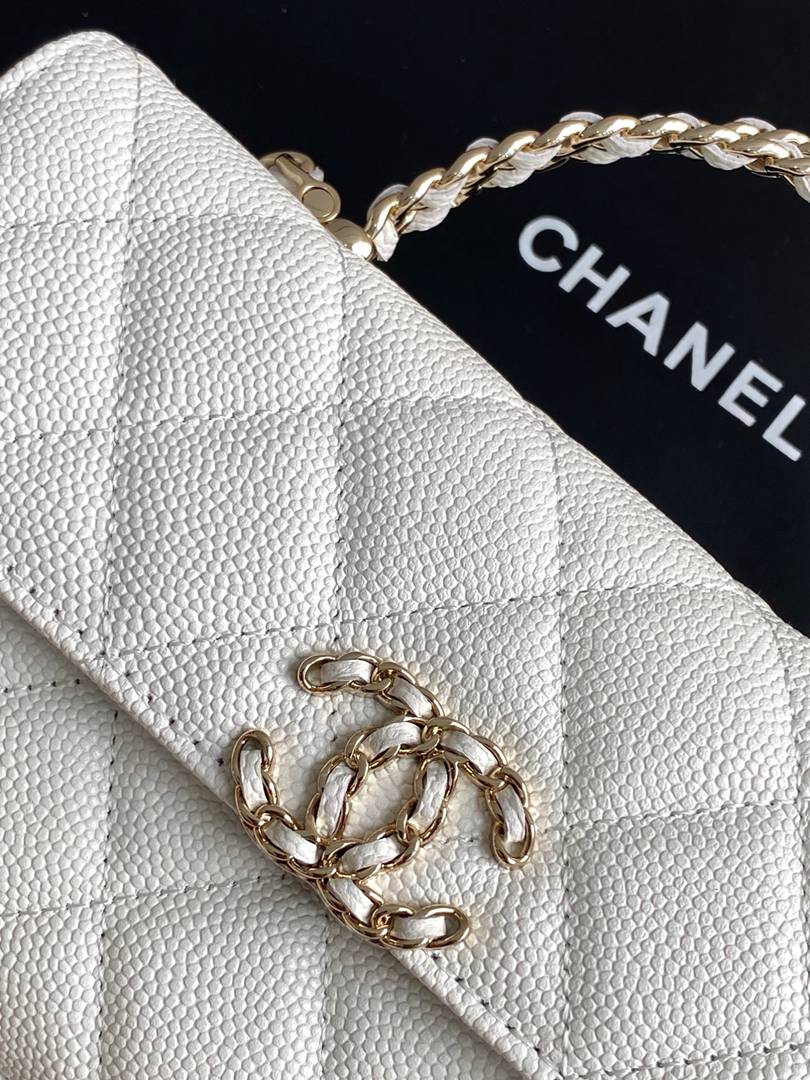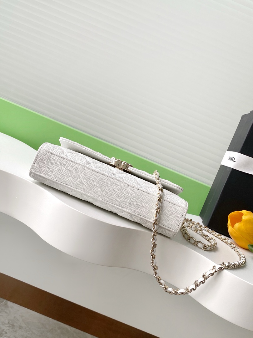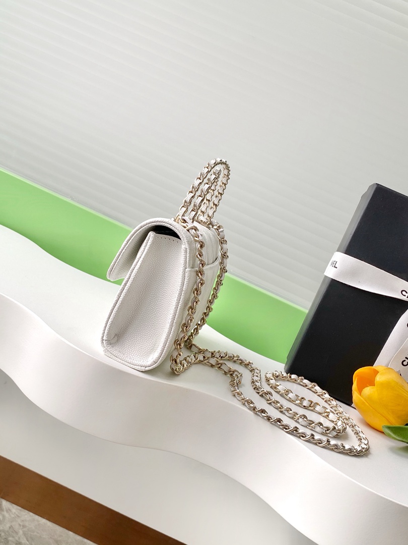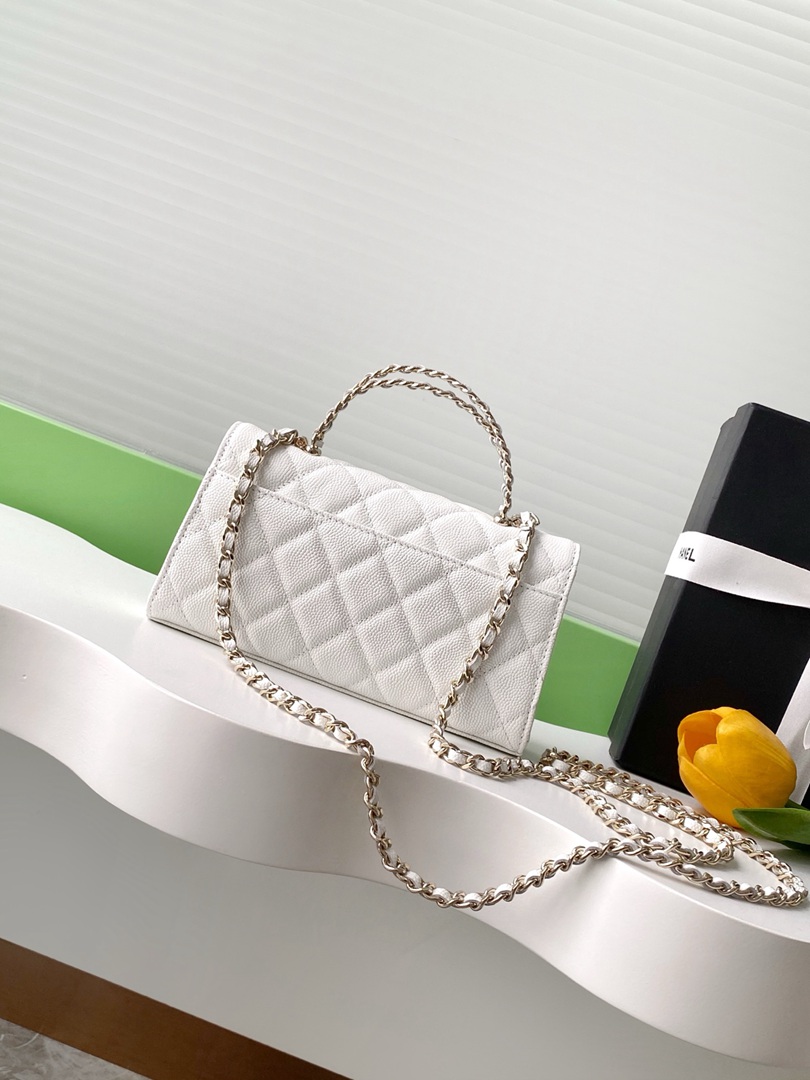 chanel 25a Cross handle horizontal kelly bag white grained calfskin sliver hardware