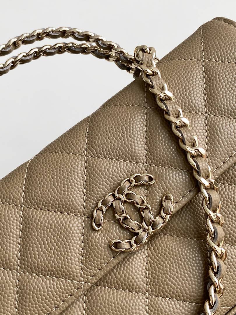 chanel 25a Cross handle horizontal kelly bag Khaki grained calfskin sliver hardware