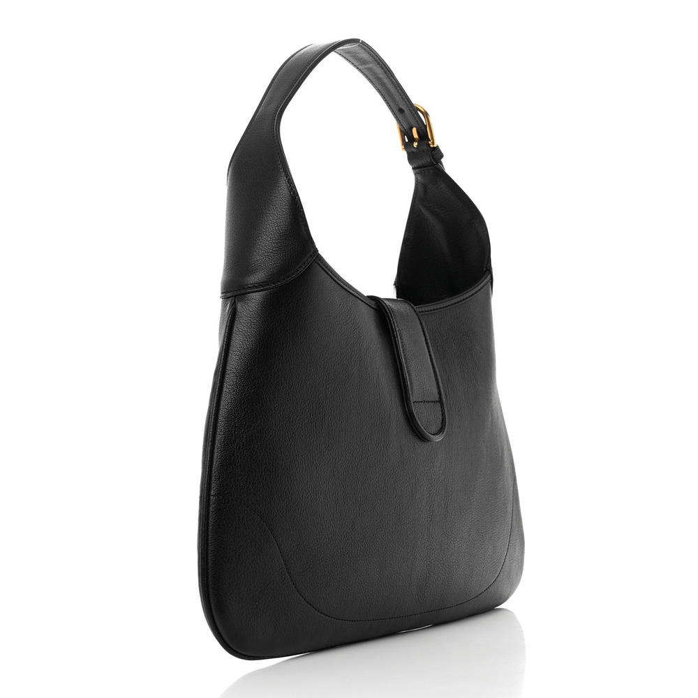 The Cruise 2023 Gucci Cosmogonie collection was presented against the backdrop of the historic Castel del Monte in Italy. The show brought together aesthetics from distant eras and geographies, and linked elements from the past with the present. This new crescent-shaped shoulder bag was shown on the runway and was inspired by the House?s archives, it is crafted in soft leather and features the Double G emblem?a code originally introduced in the 1970s.