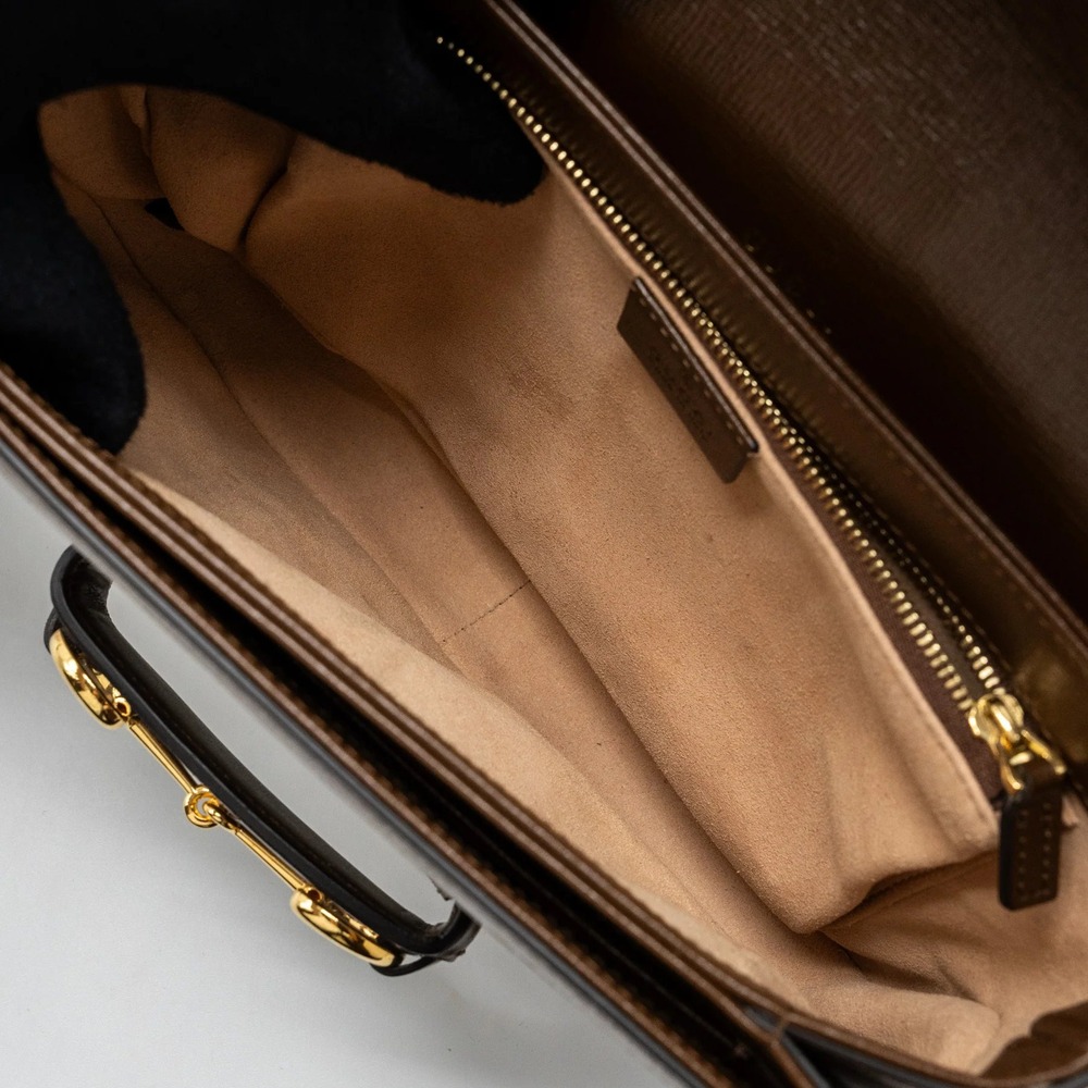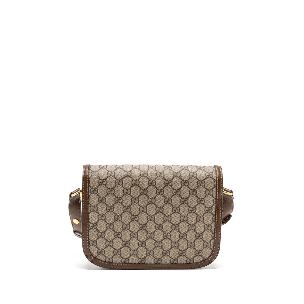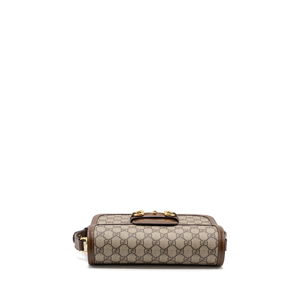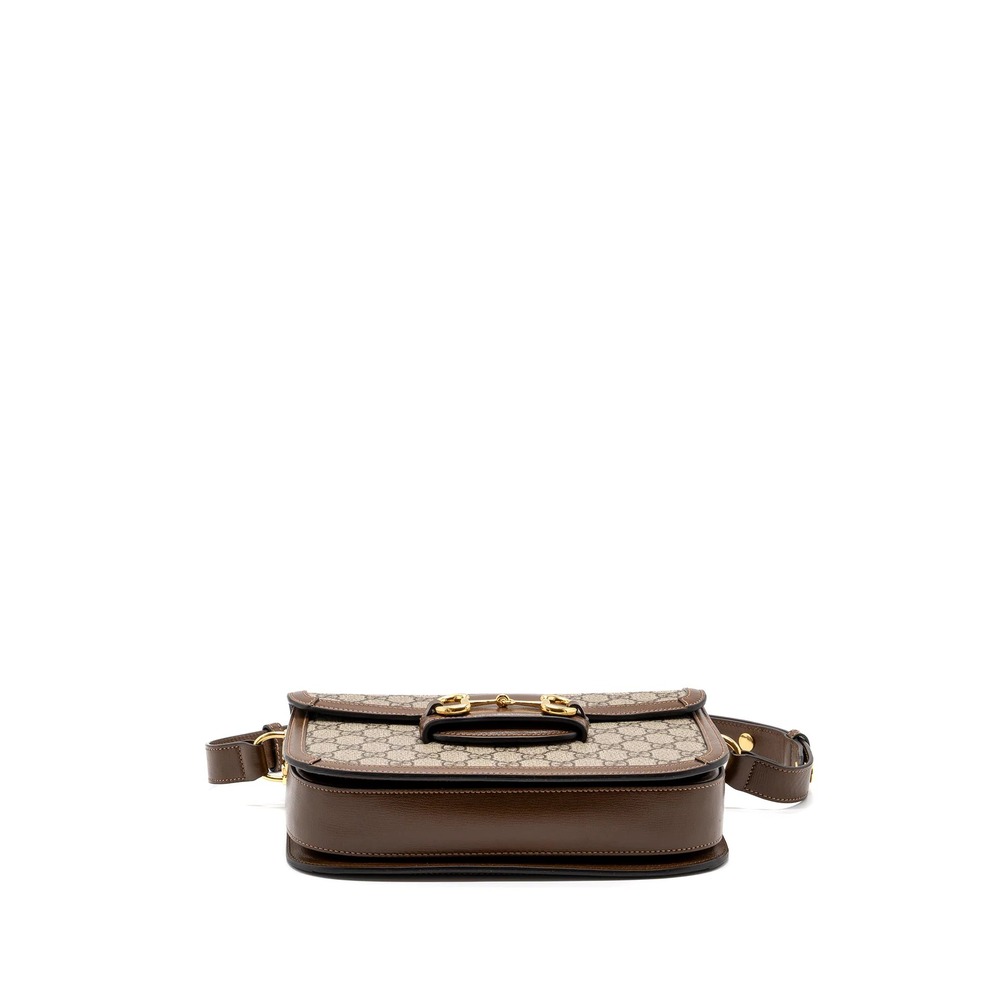 Recreated from an archival design, with the same lines and forms first introduced over six decades ago, the Gucci Horsebit 1955 shoulder bag unifies the original details with a modern spirit, highlighting the Horsebit. Part of Gucci?s genetic code, the double ring and bar design has been established as one of the most distinctive elements among the House symbols borrowed from the equestrian world. Presented on a small flap shoulder bag, the hardware is paired with the House?s monogram fabric and completed with a special mechanism that adjusts the length of the shoulder strap so it can be carried on one shoulder or cross body.