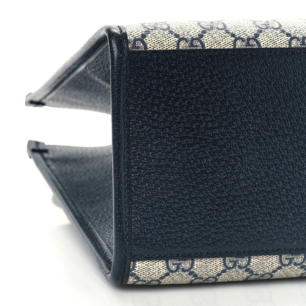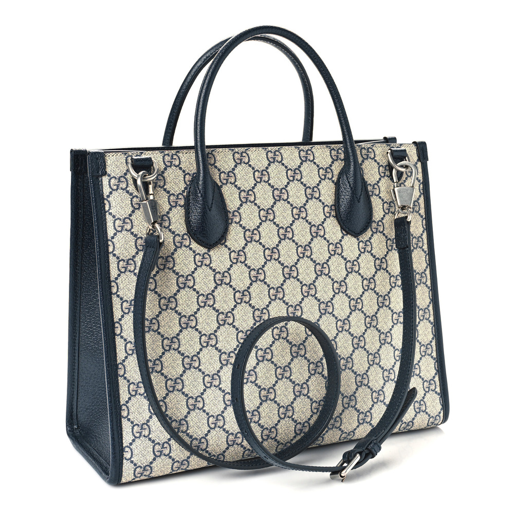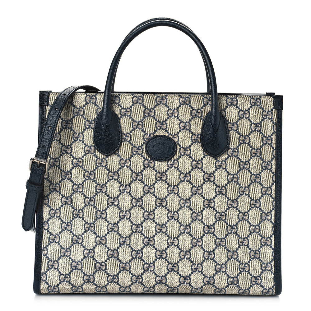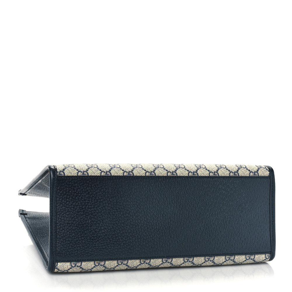 Mirroring the material’s historic origins, GG Supreme is introduced in a timeless mix of blue and beige for Gucci Love Parade. The canvas has come to the front of each collection decade after decade to become a hallmark of the House. Here, the classic palette defines this medium Interlocking G tote bag.