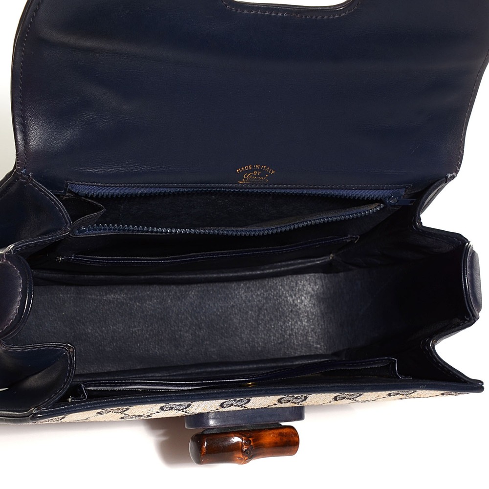 Gucci Monogram Bamboo Medium Top Handle Bag Navy