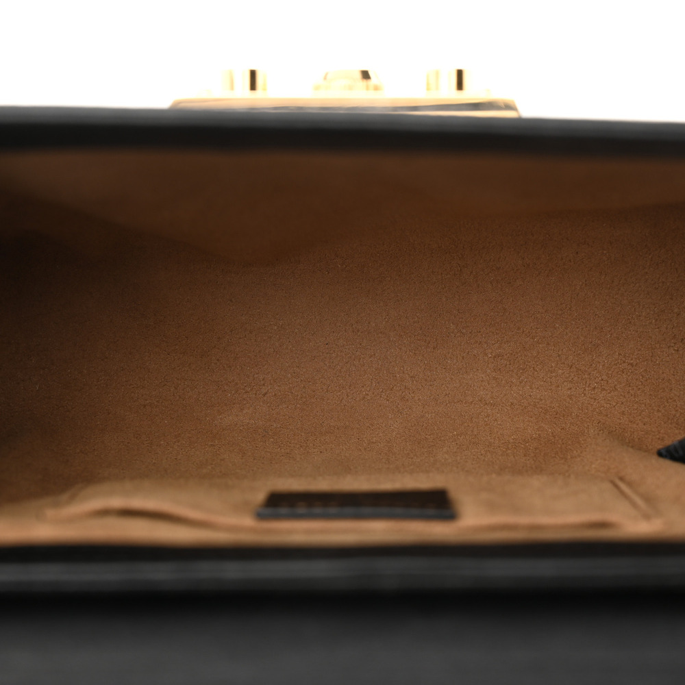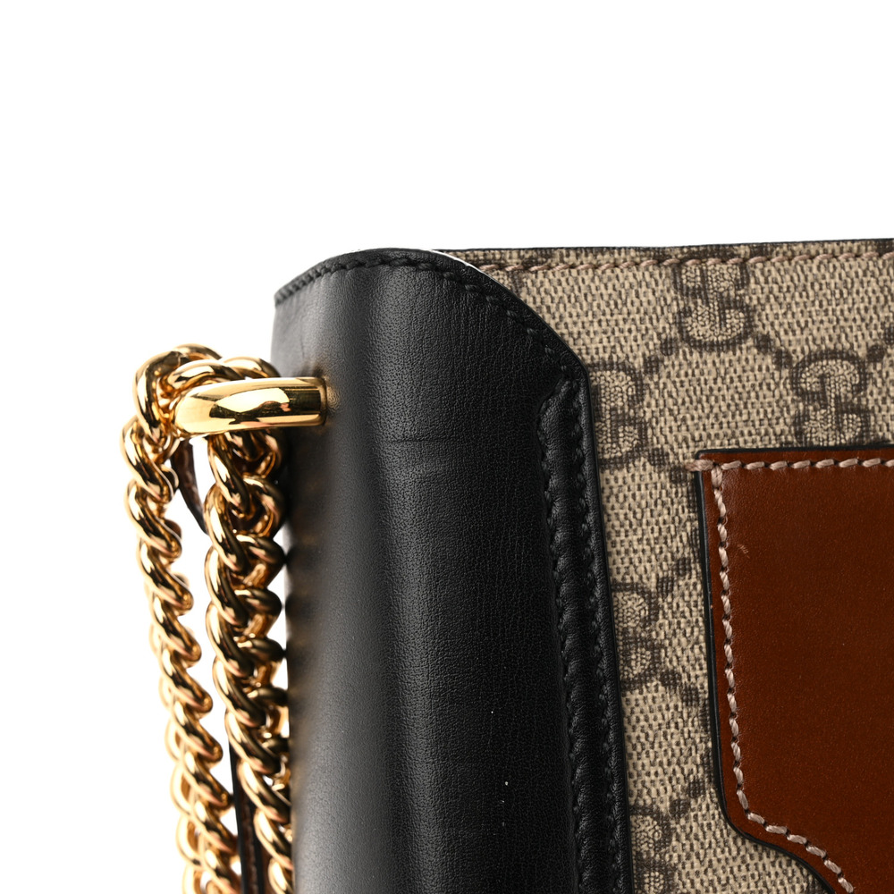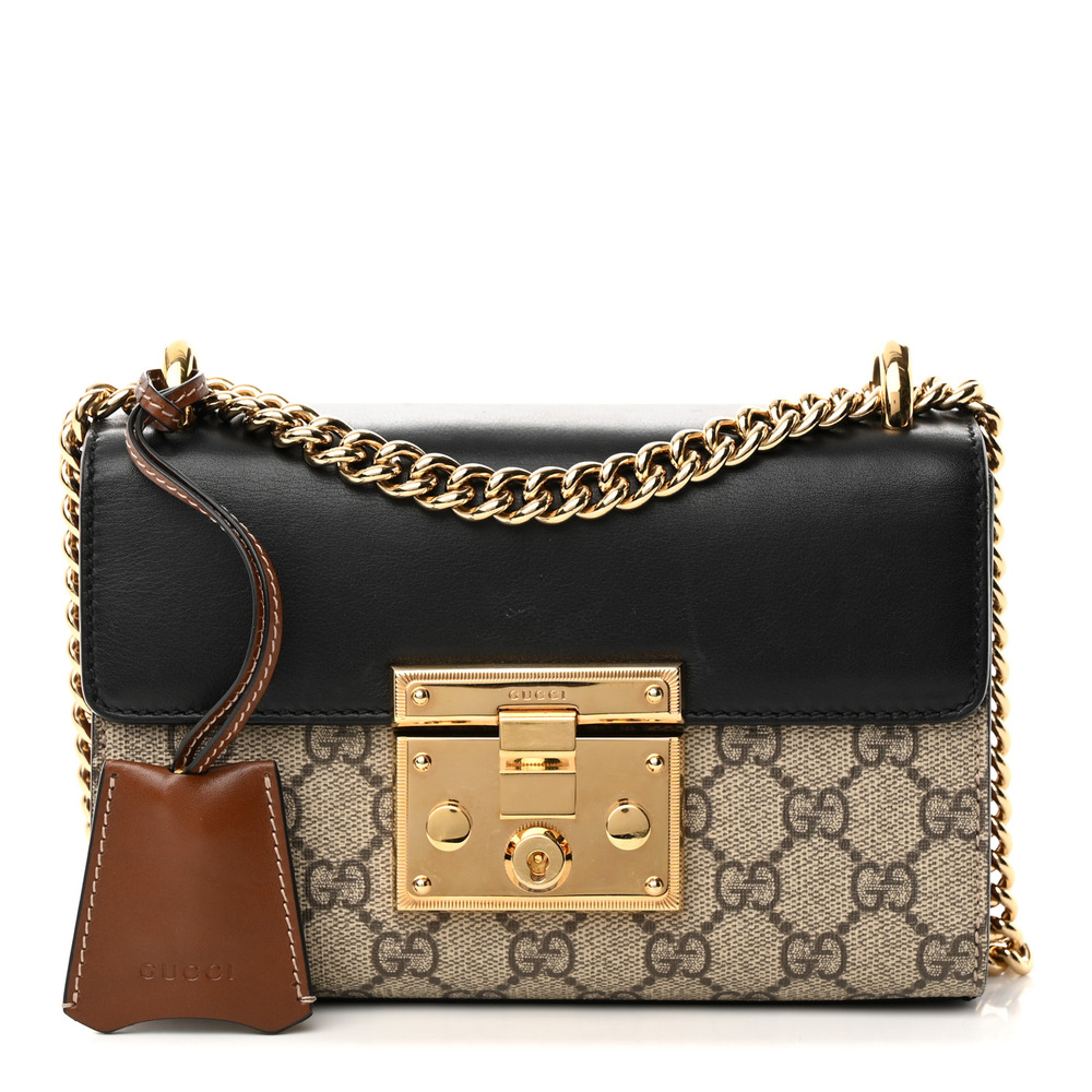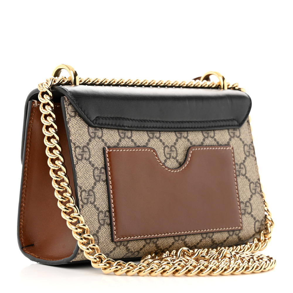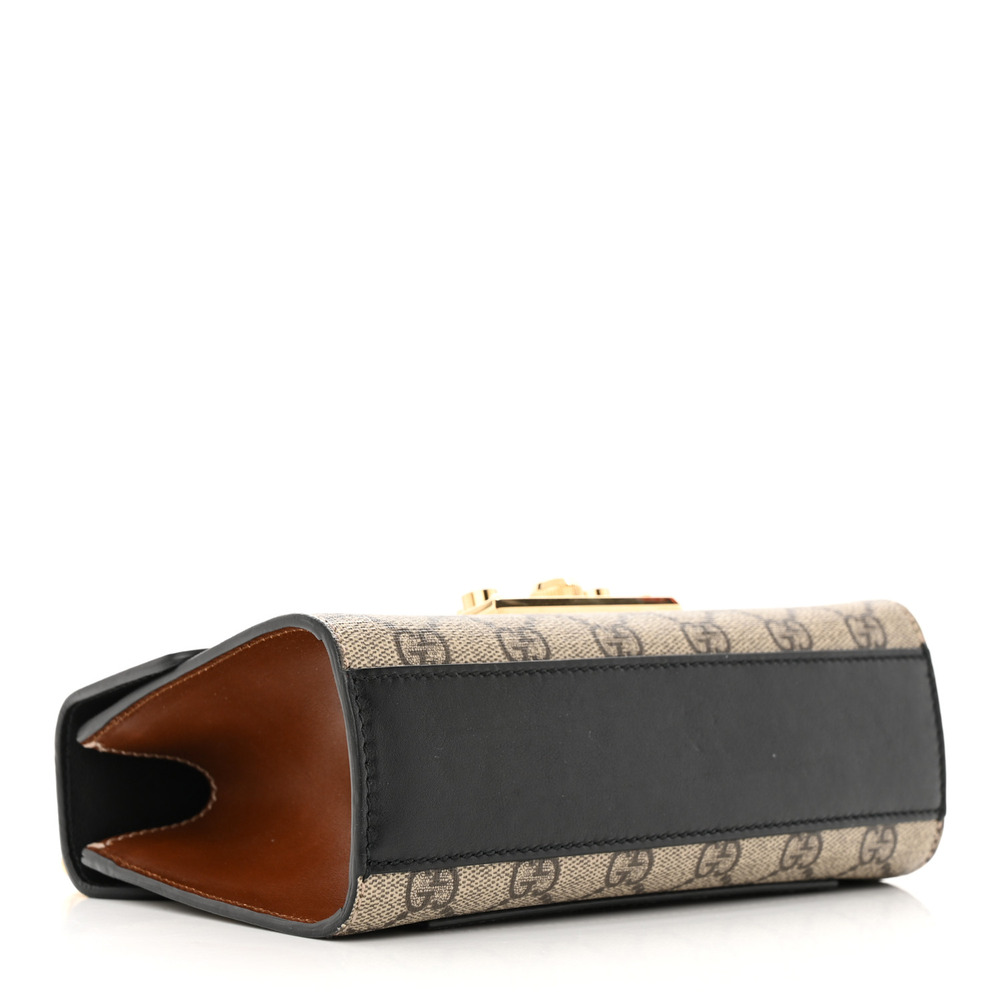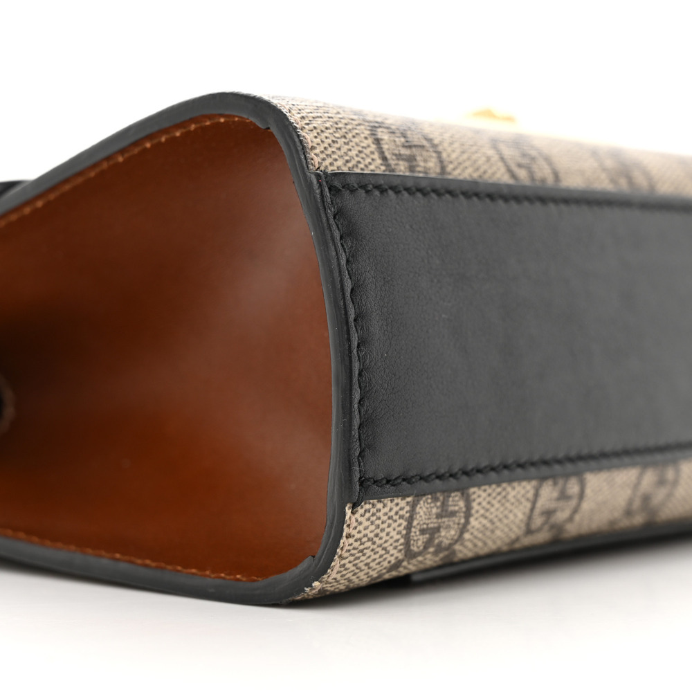 A small structured GG Supreme canvas bag with a leather top and our key lock closure. The sliding chain strap can be worn multiple ways, changing between a shoulder and a top handle bag.