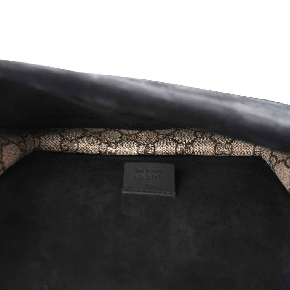 During the Cruise 2023 Gucci Cosmogonie fashion show, new constellations of House codes were presented. The now recognizable tiger head closure continues to decorate new iterations of the Dionysus handbag. Here, the small structured shape is juxtaposed by a bold Web strap embellished with studs that spell out Gucci.