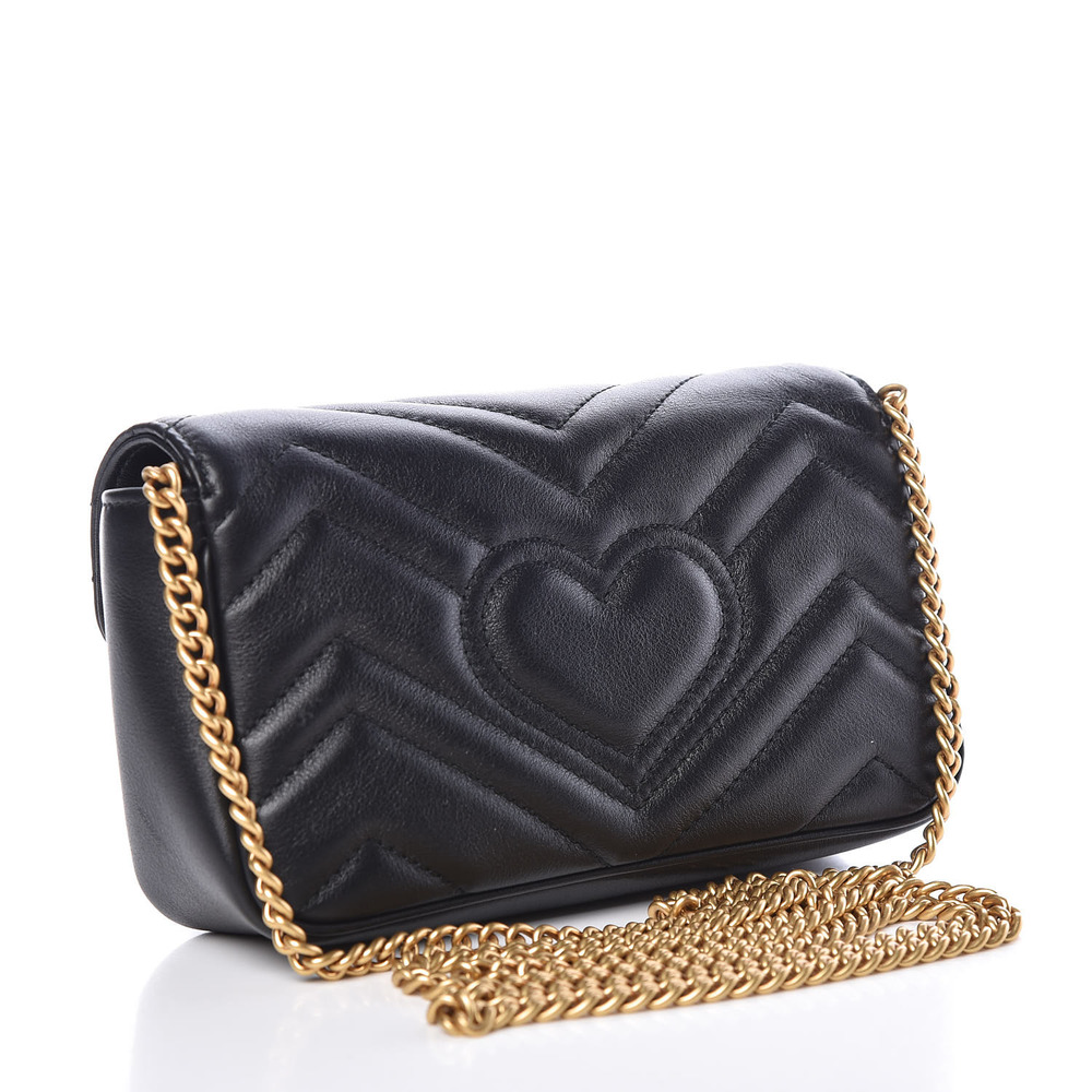 The small GG Marmont camera bag has a softly structured shape and a flap closure with Double G hardware. The sliding chain strap can be worn multiple ways, changing between a shoulder and a top handle bag. Made in matelass?? chevron leather with a heart on the back.