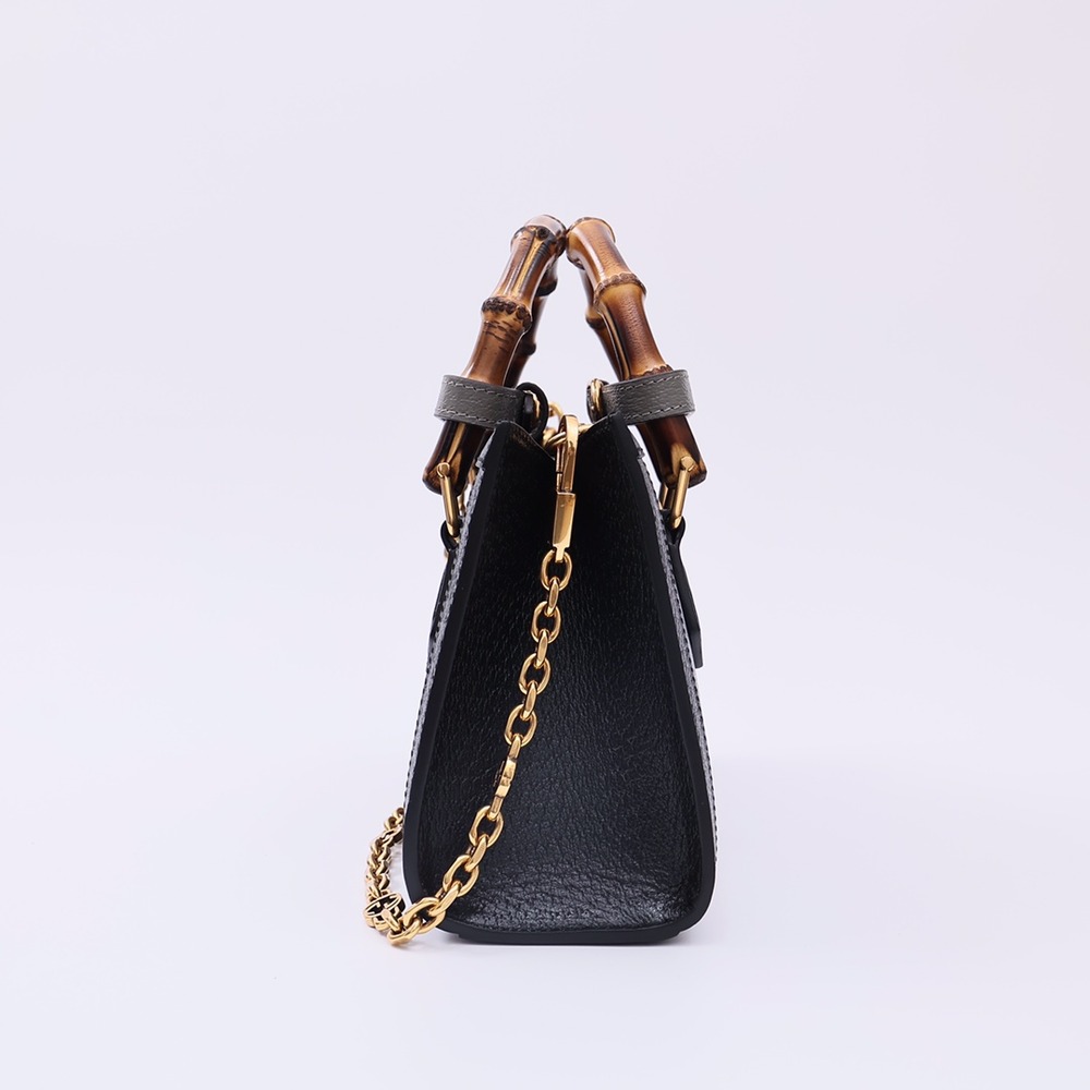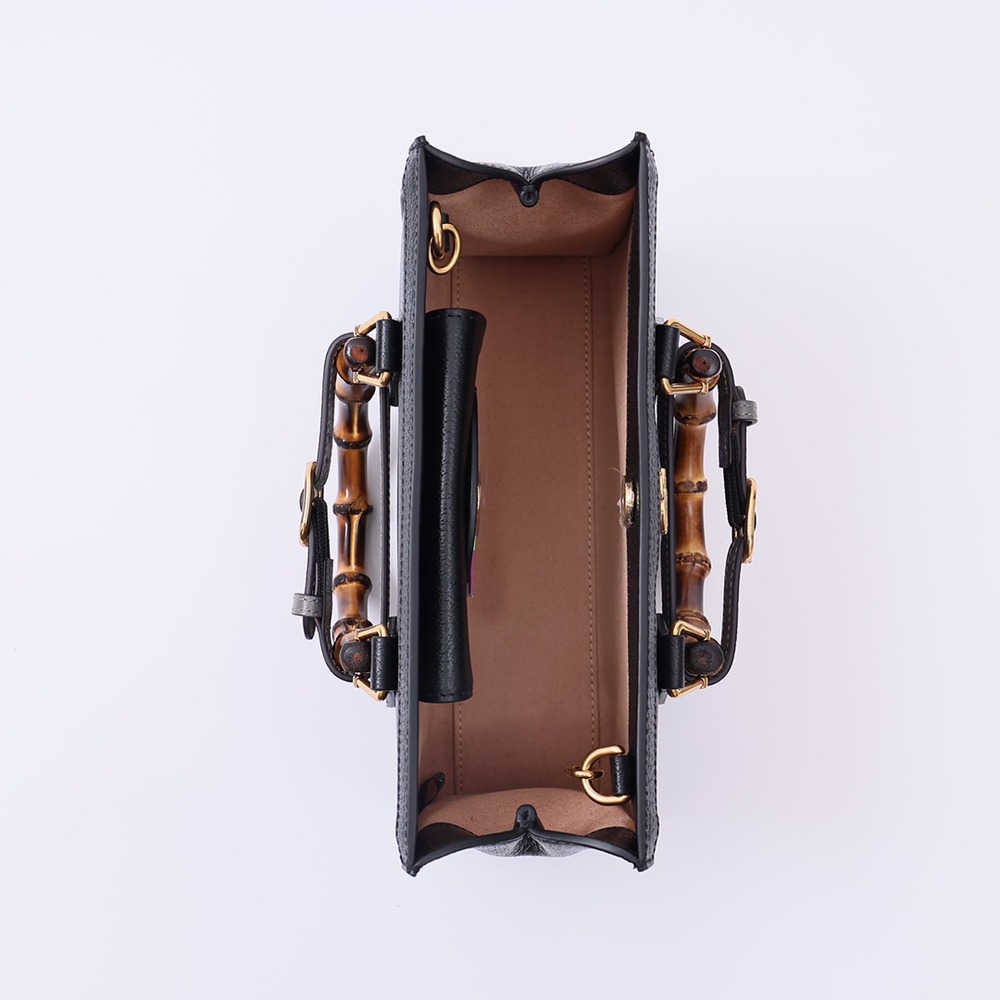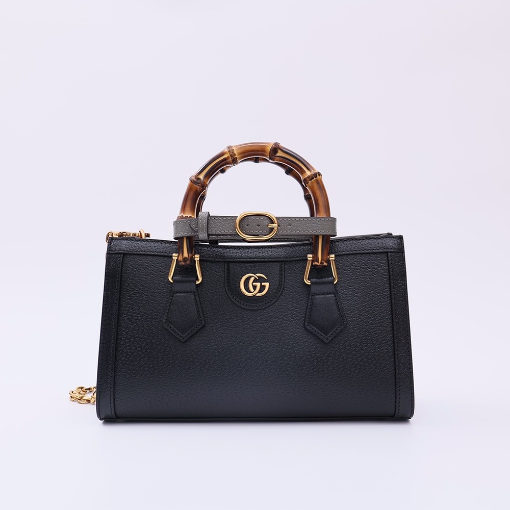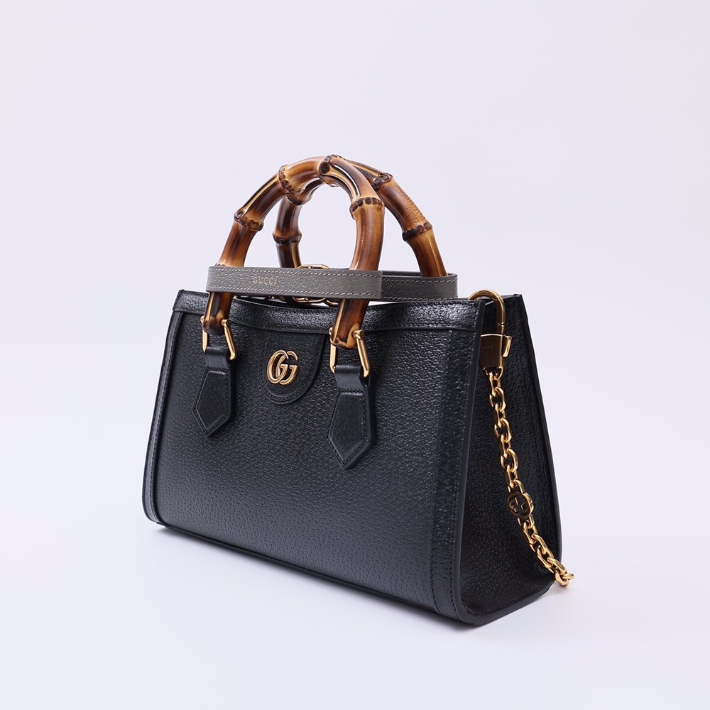 A new shape for Cruise 2023 Gucci Cosmogonie, the Gucci Diana continues to combine recognisable elements of the House with the bamboo handles and Double G hardware. Crafted from brown leather, the accessory is further accentuated by two decorative leather belts, a playful reference to the bands used to keep handles in shape.