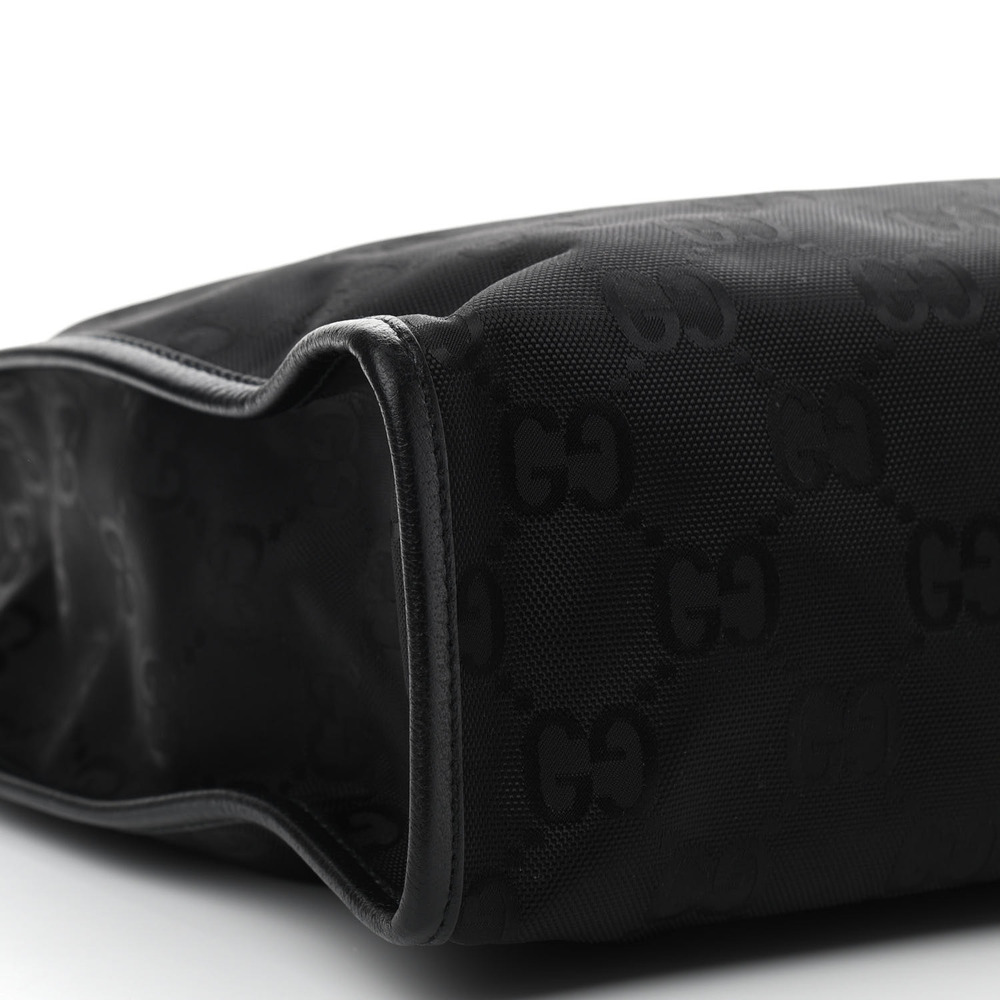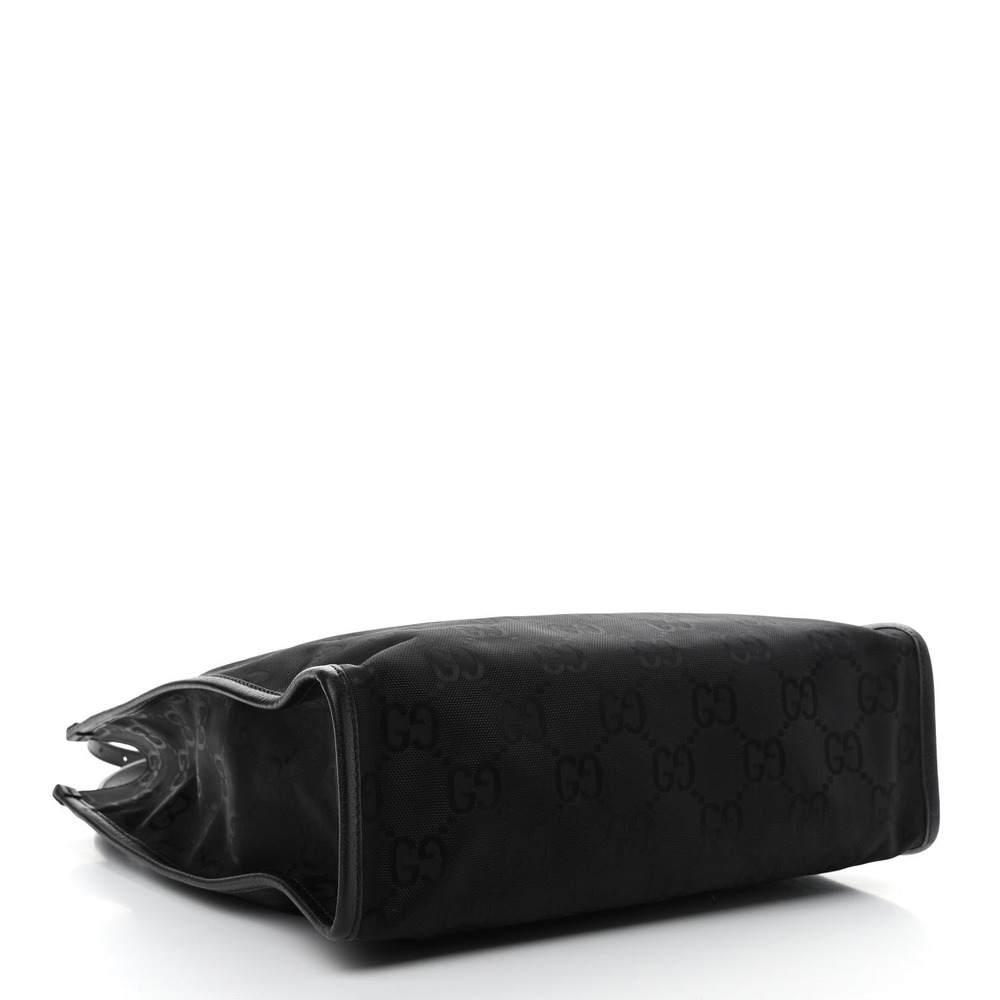 A line of accessories and ready-to-wear is presented for Pre-Fall 2020 made from recycled materials and trims, supporting the House’s commitment to sustainability. Gucci Off The Grid is the first collection from Gucci Circular Lines?a concept created to support the House’s vision for circular production. Gucci Off The Grid uses recycled, organic, bio-based and responsibly sourced materials. Regenerated nylon, crafted using recycled sewing thread and trims displays the GG pattern against an opaque background in black. Crafted into a double handled tote bag, the shape is finished with an optional shoulder strap that can be detached on one side and stored within the bag.
