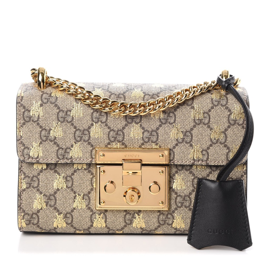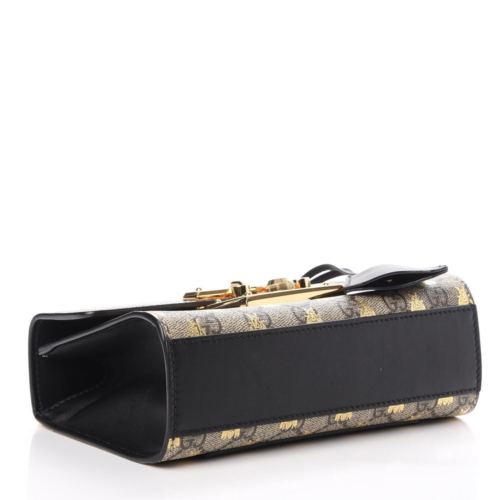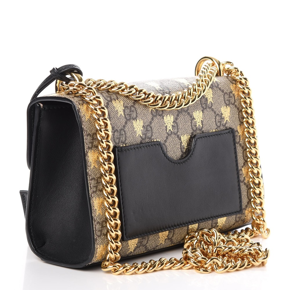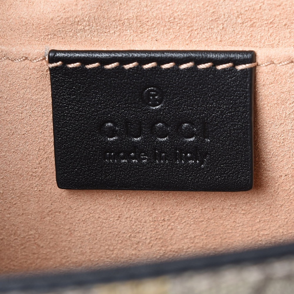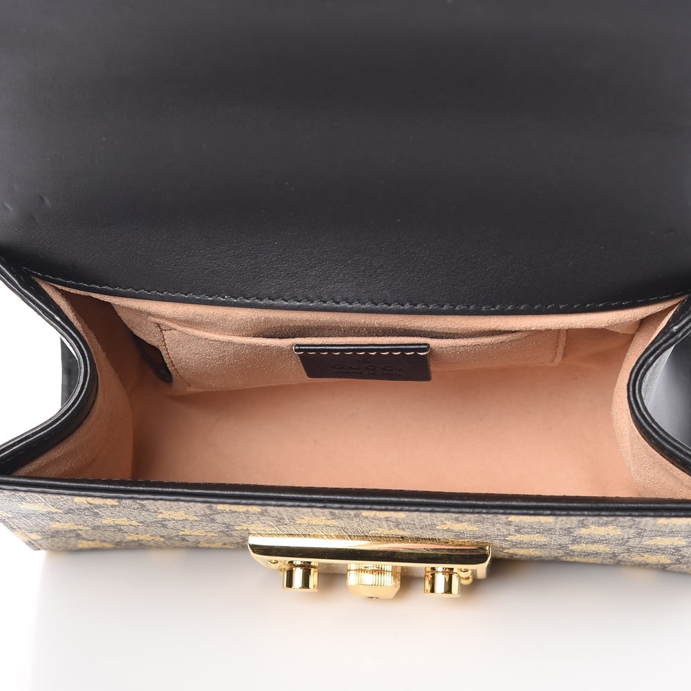 A small structured GG Supreme canvas bag with a leather top and our key lock closure. The sliding chain strap can be worn multiple ways, changing between a shoulder and a top handle bag.