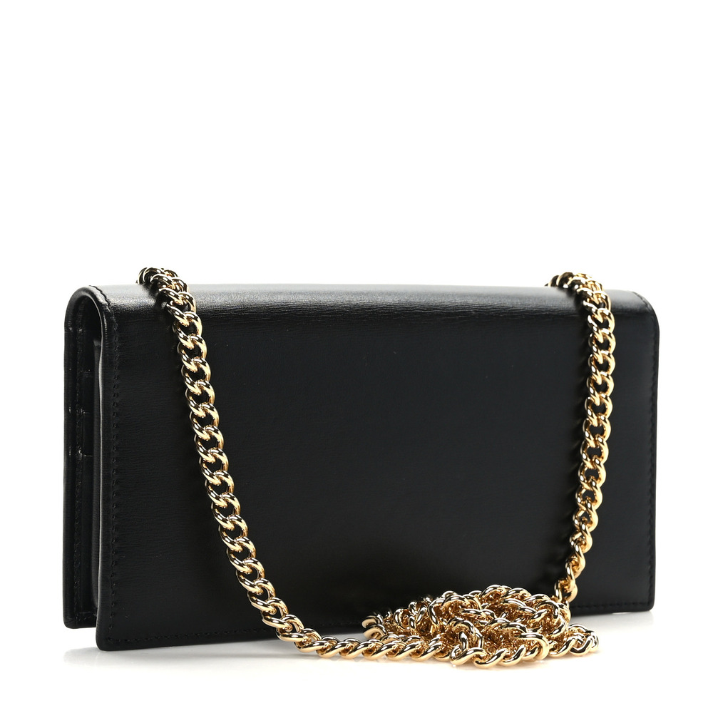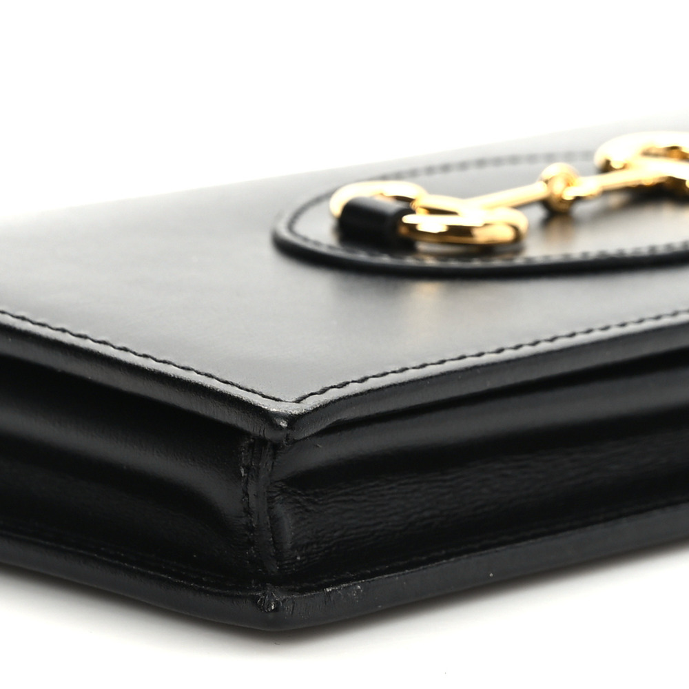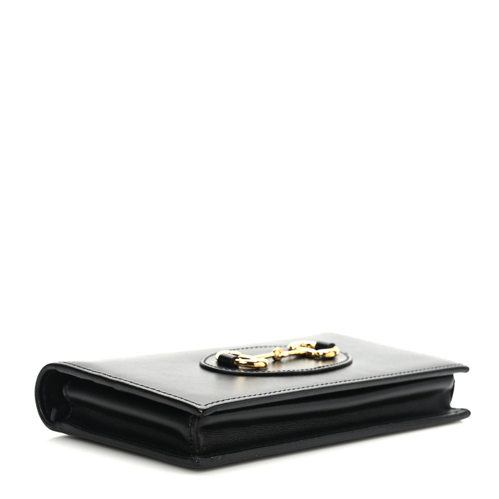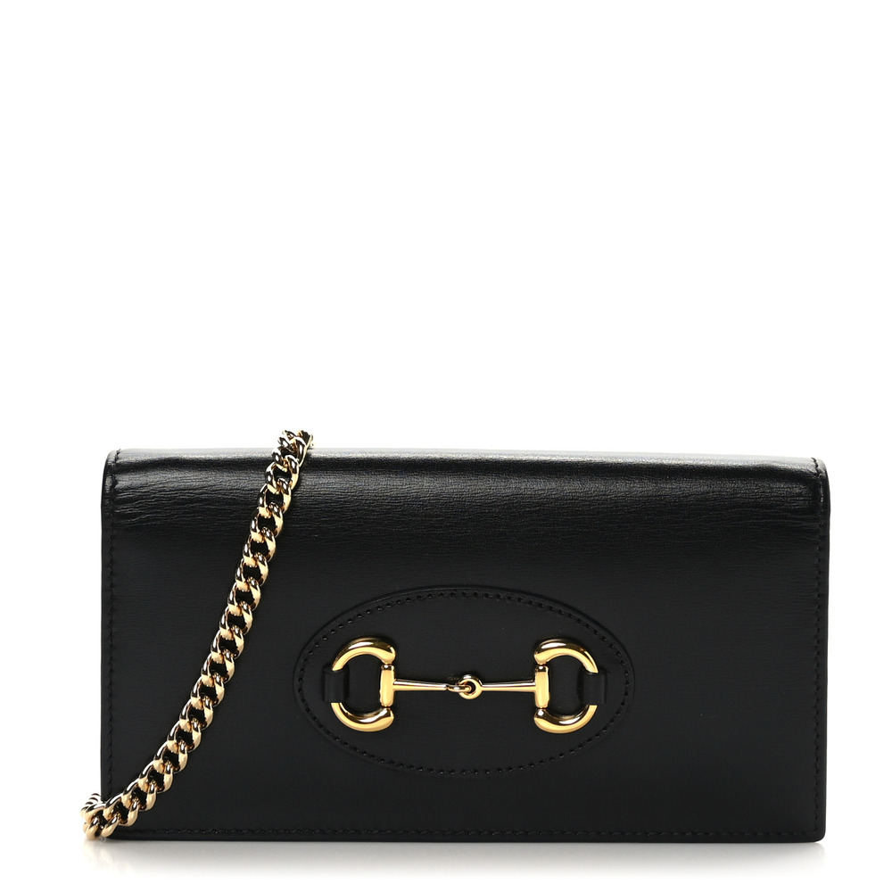 The chain wallet in GG Supreme canvas and leather is introduced as part of the Gucci Horsebit 1955 accessories collection, defined by the double ring and bar design also found in Handbags. The folded snap-closure shape features several card slots and pockets, completed with a detachable chain strap.