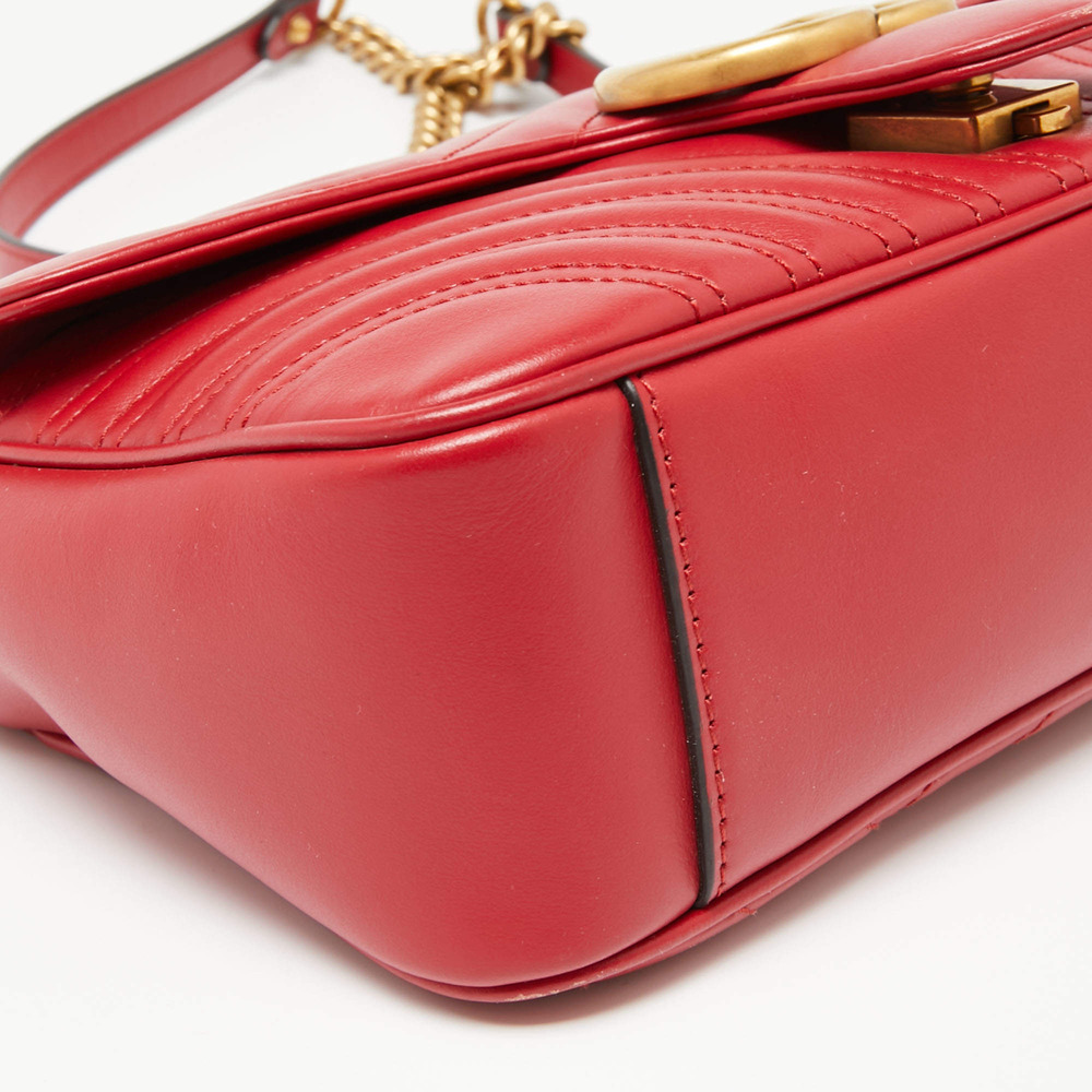 The small GG Marmont top handle bag has a softly structured shape and an oversized flap closure with Double G hardware. Made in matelass?? chevron leather with a heart on the back.