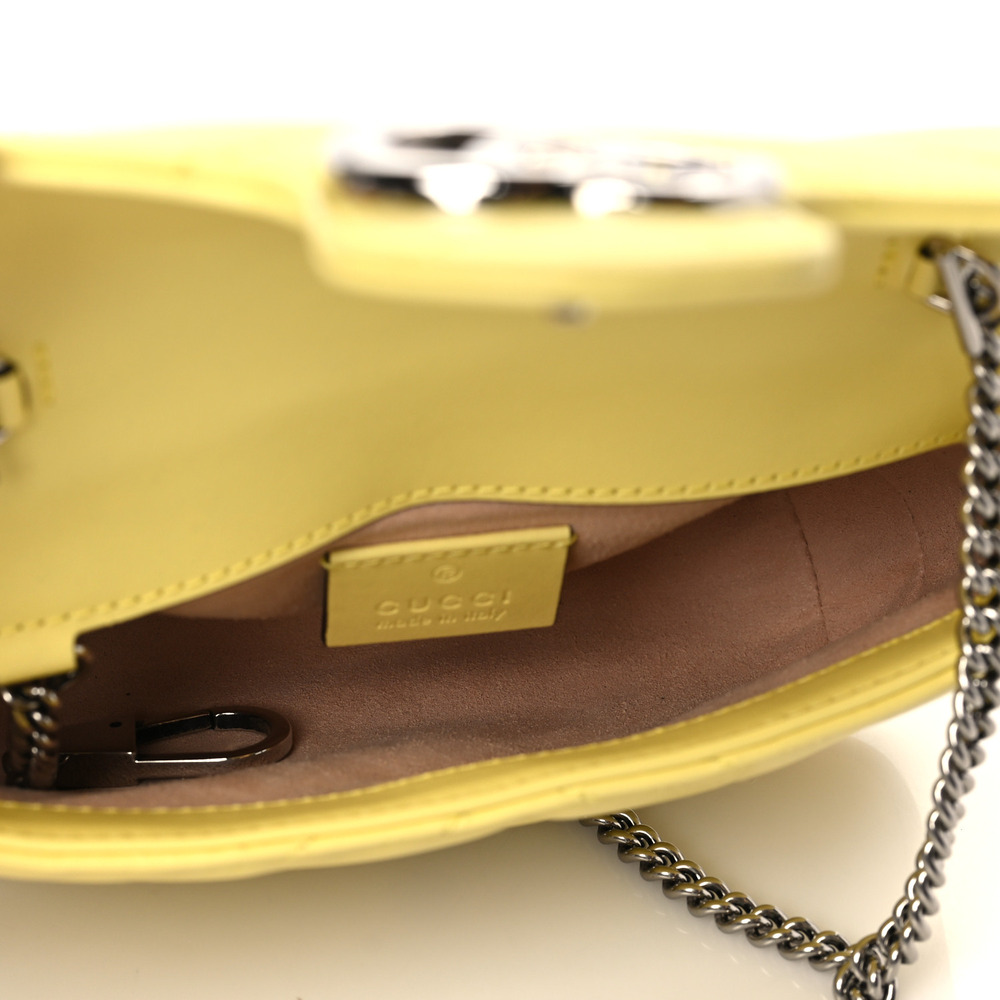 The GG Marmont mini bag in white matelass?? leather is defined by its softly structured shape and a flap closure. The Double G defines the line, a three-dimensional detail inspired by an archival design from the ’70s.