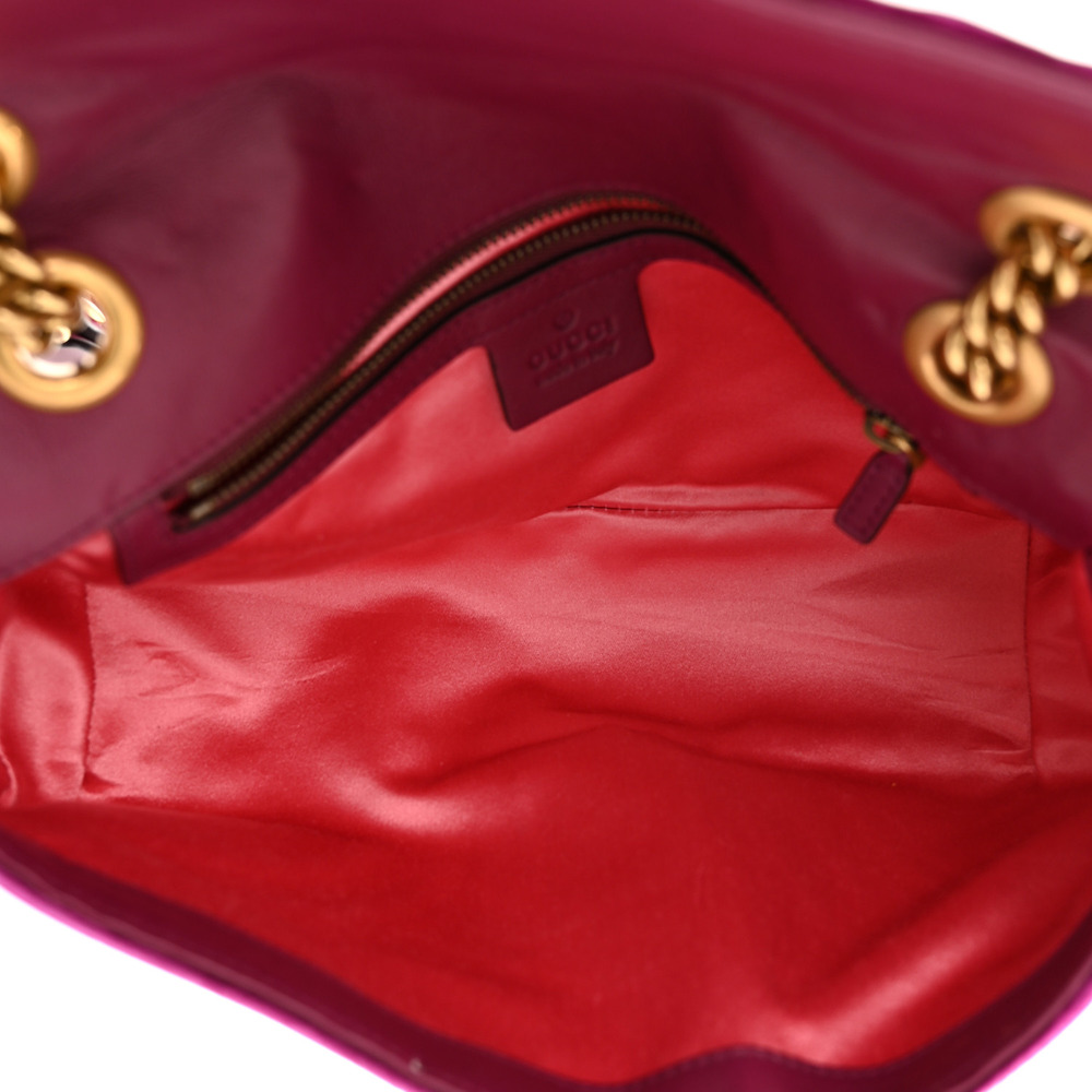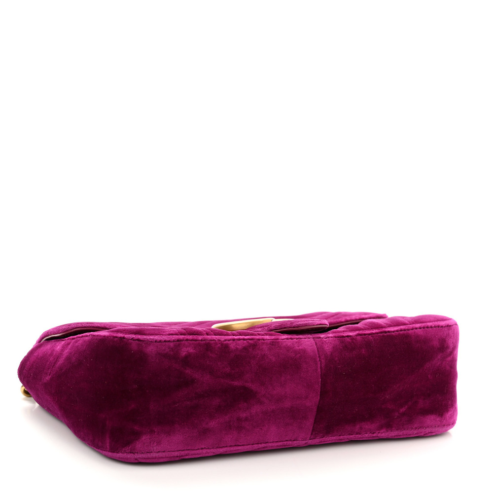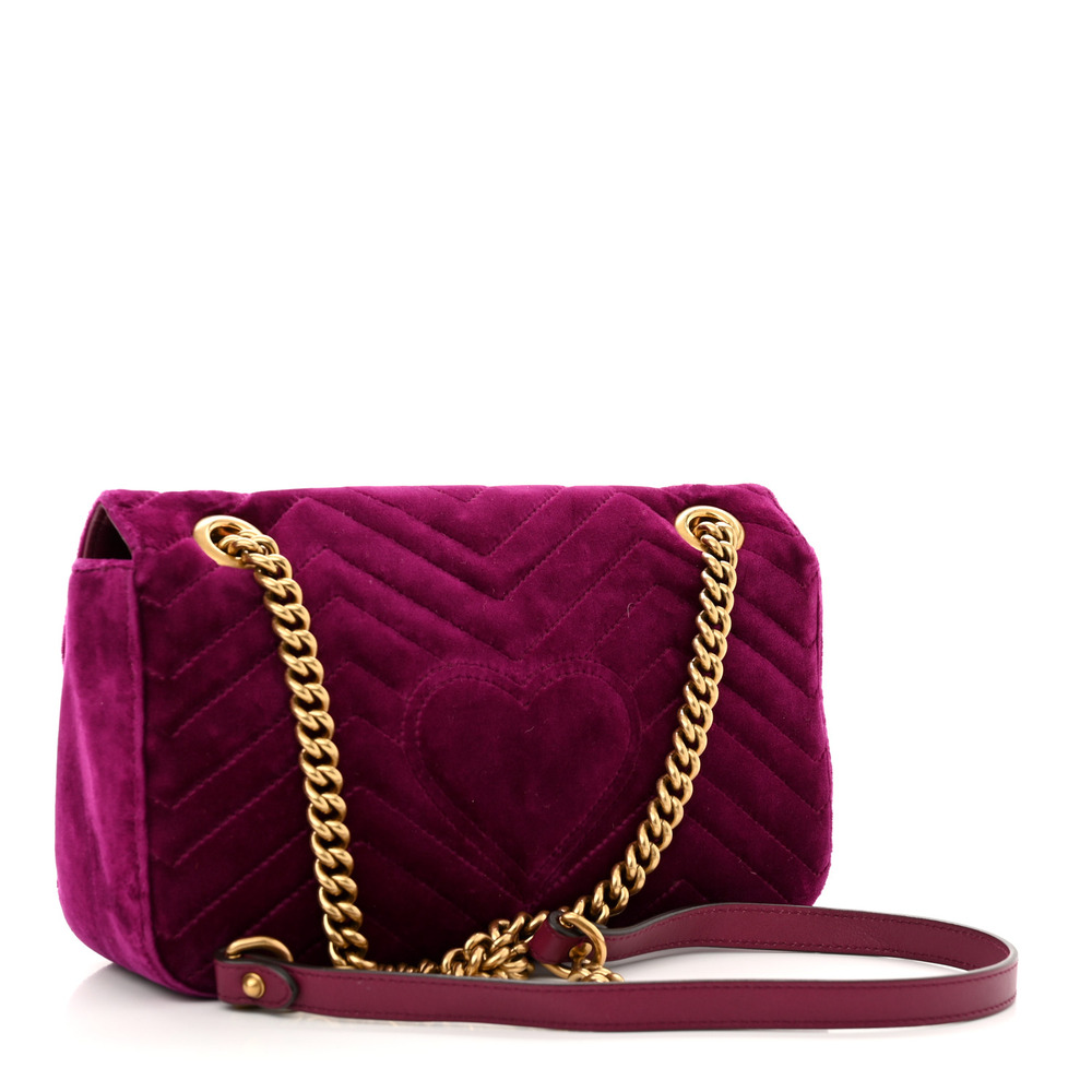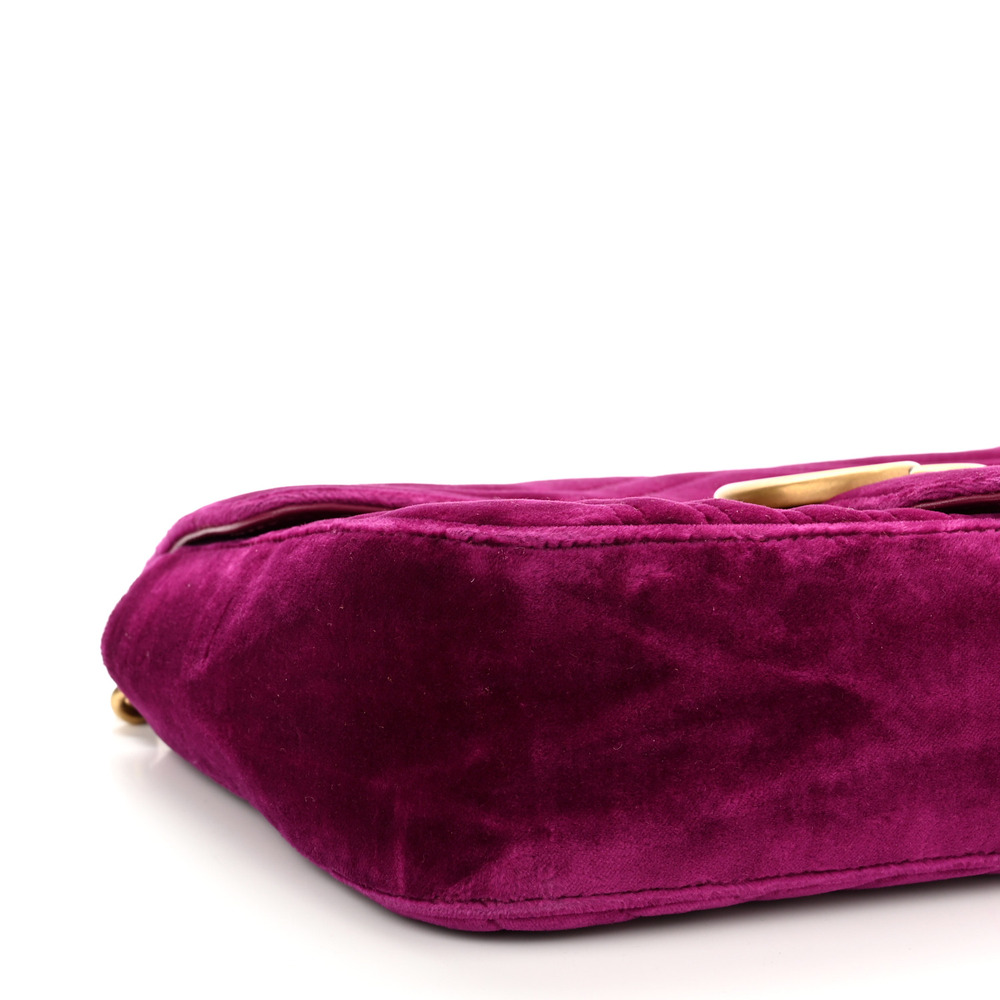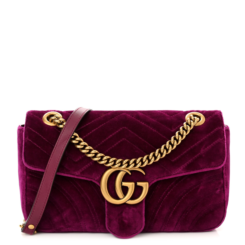 This GG Marmont small shoulder bag presents a softly quilted velvet version of the classic bag style. A tonal leather trim compliments the luxurious shade that heralds the beginning of a new season.