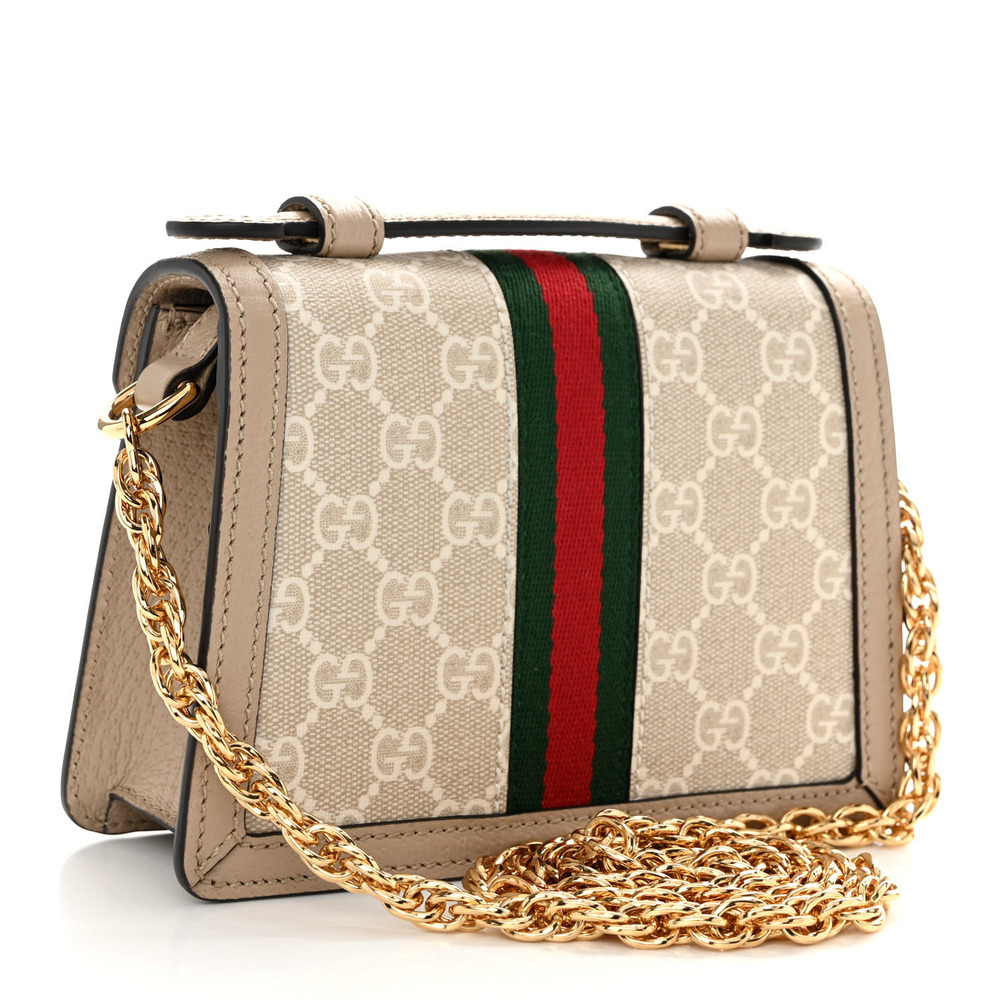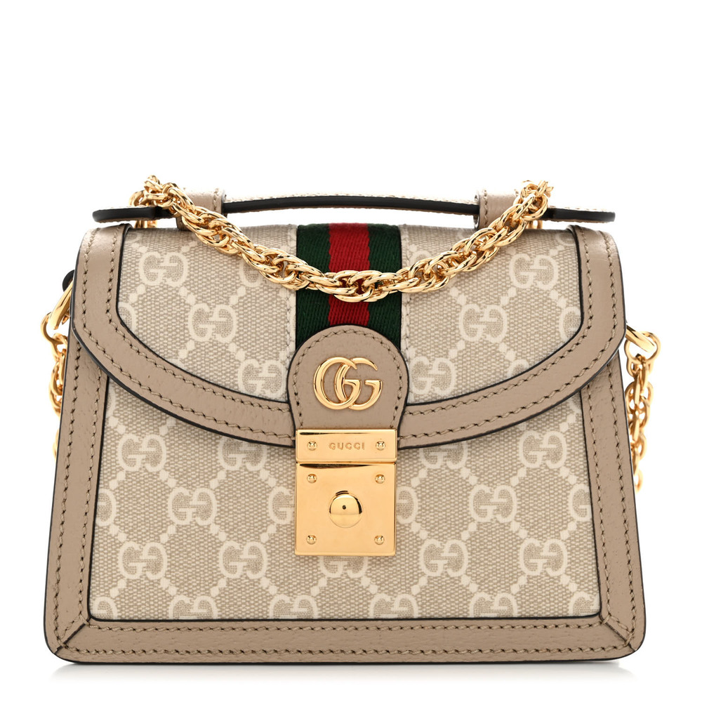 The world of Ophidia continues to evolve with new iterations each season. The top handle bag is presented as part of the Epilogue collection with a detachable shoulder strap. The vintage influenced square shape is accentuated by the House Web stripe and Double G hardware?a contemporary take on a Gucci archival belt buckle from the ’70s. Crafted from the House’s monogram canvas, the style has a strong logo feel.