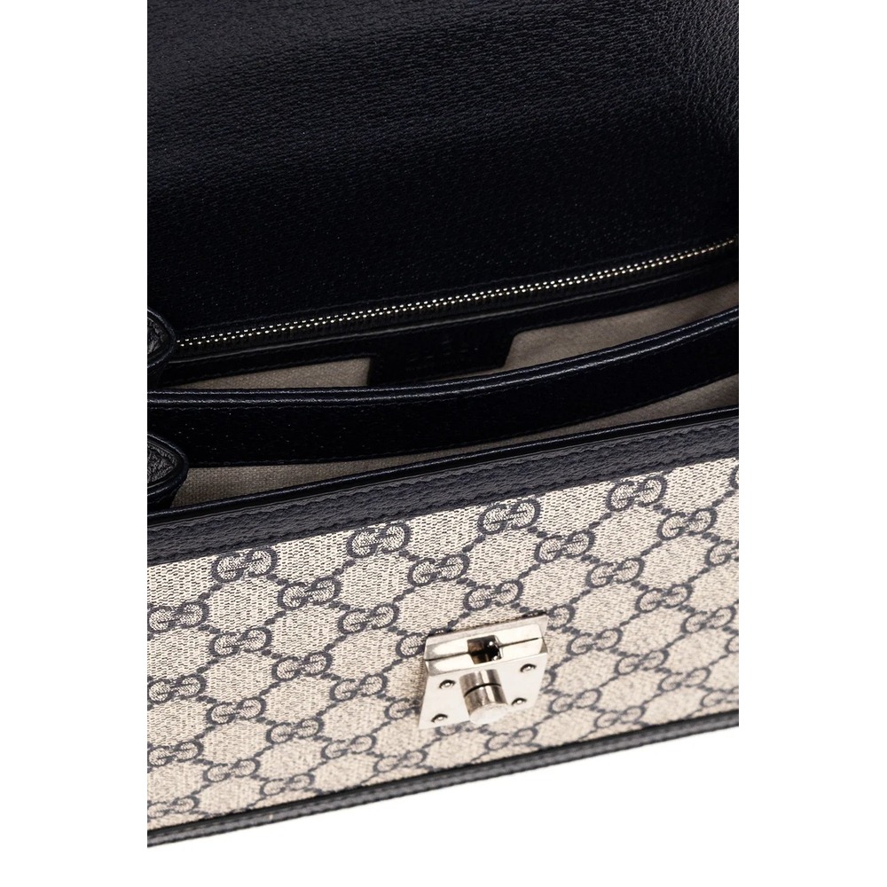 Mirroring the material’s historic origins, GG Supreme is introduced in a timeless mix of blue and beige for Gucci Love Parade. The canvas has come to the front of each collection decade after decade to become a hallmark of the House. Here, the classic palette defines this small-sized Ophidia top handle bag.