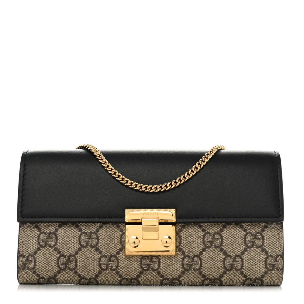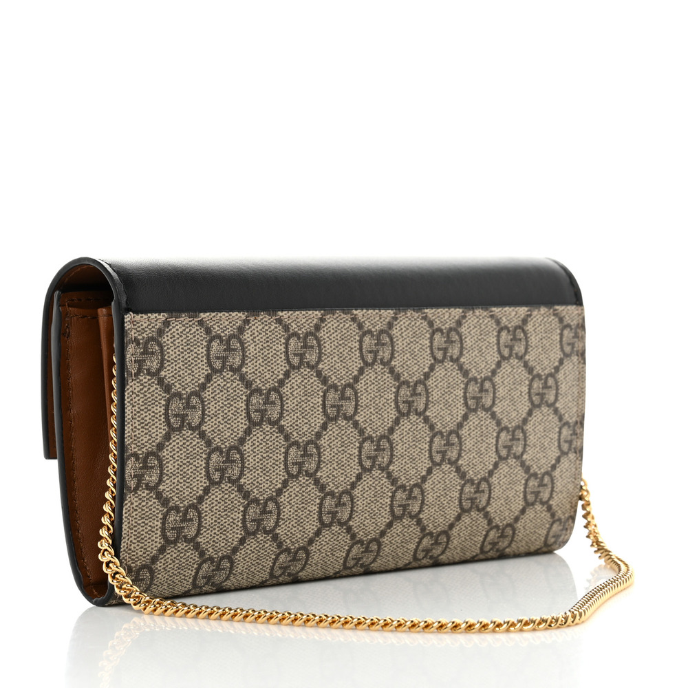 Gucci GG Supreme Monogram Moon Padlock Continental Chain Wallet