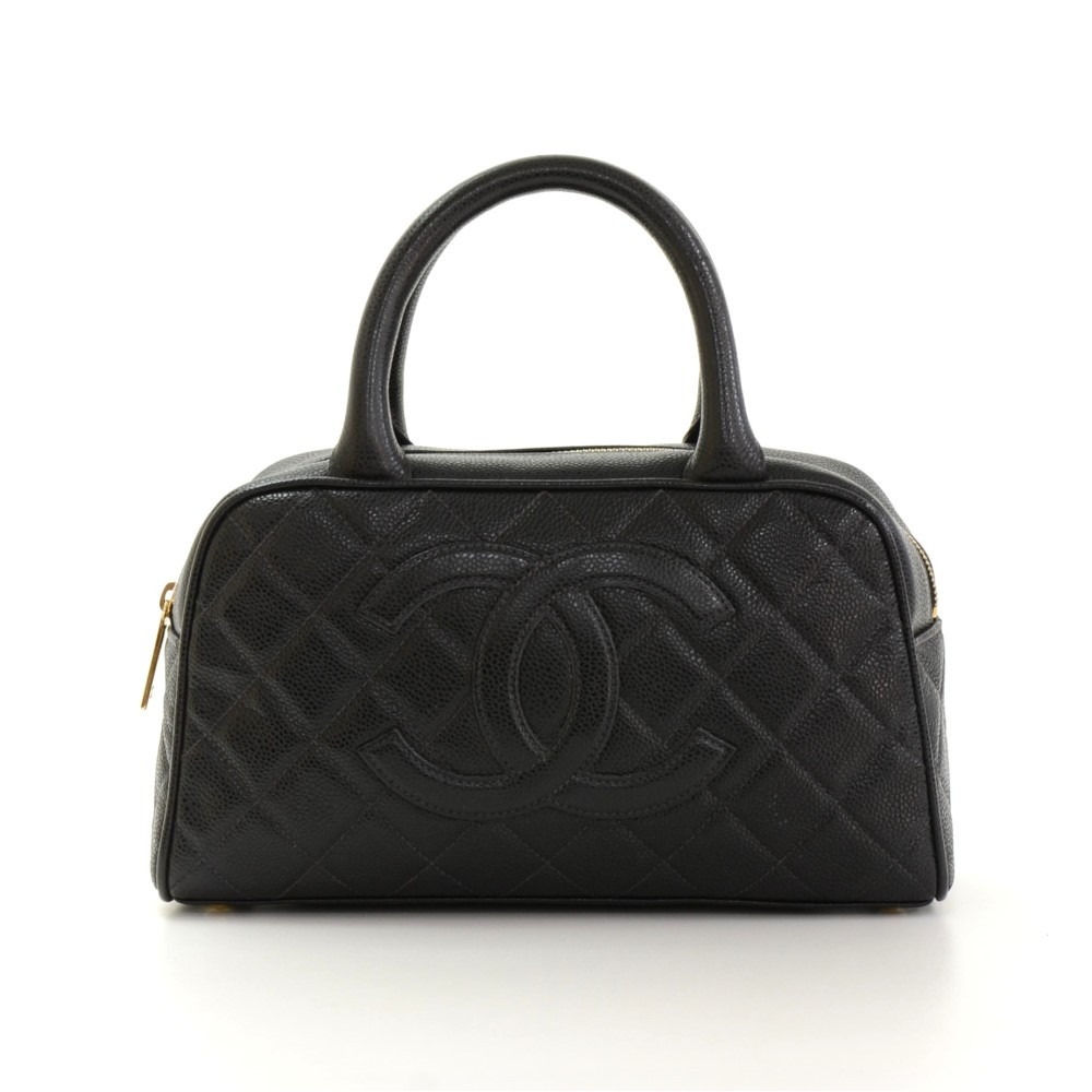 CHANEL Quilted Caviar Bowler small Black