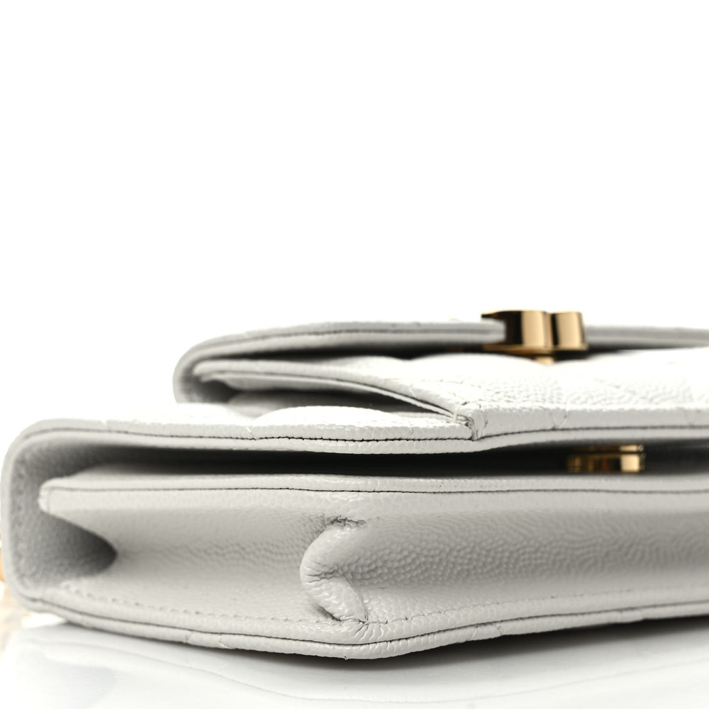 CHANEL Caviar Quilted Pocket Twins Clutch With Chain White