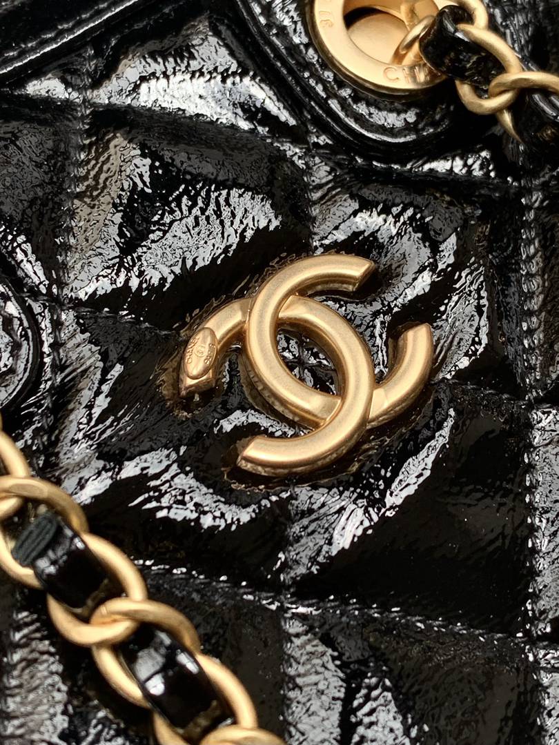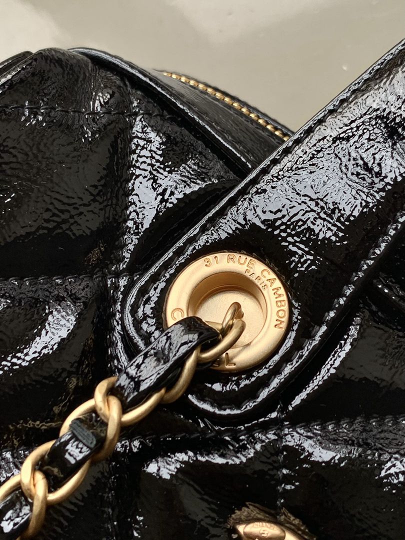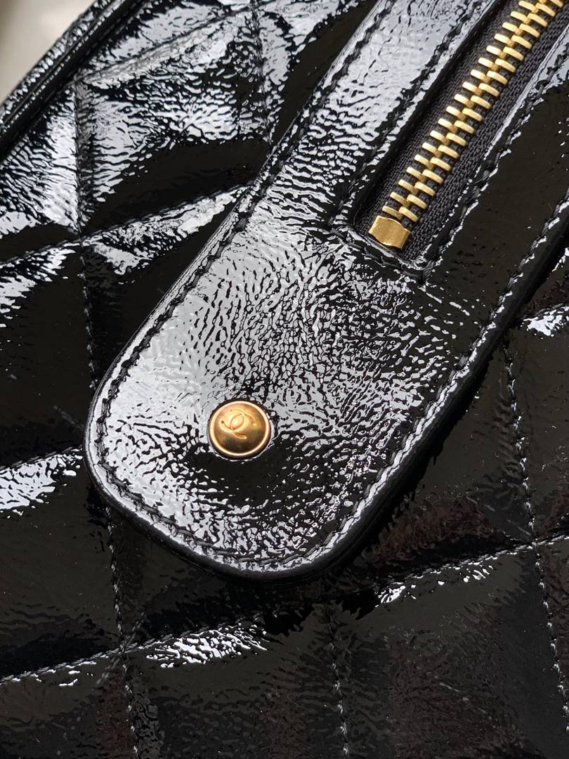 chanel 25a bowling bag black Patent crumpled calfskin gold hardware