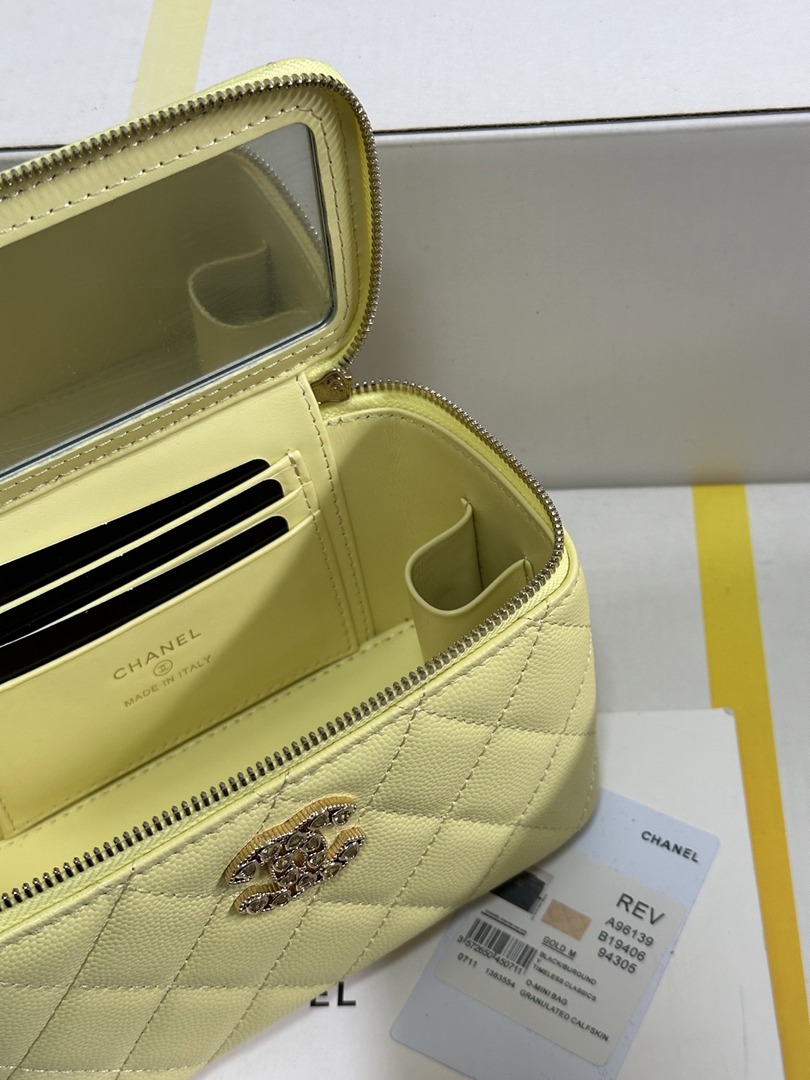 chanel 25p Vanity Case Heart rhinestones bag light yellow caviar calfskin gold hardware small