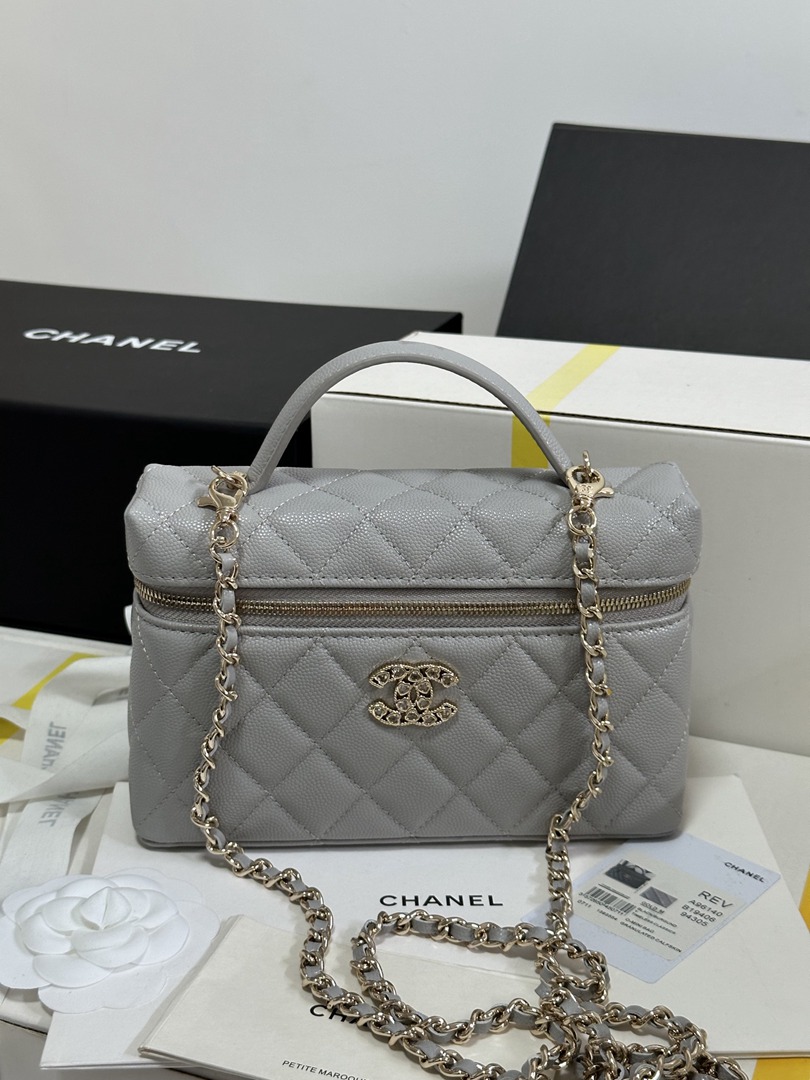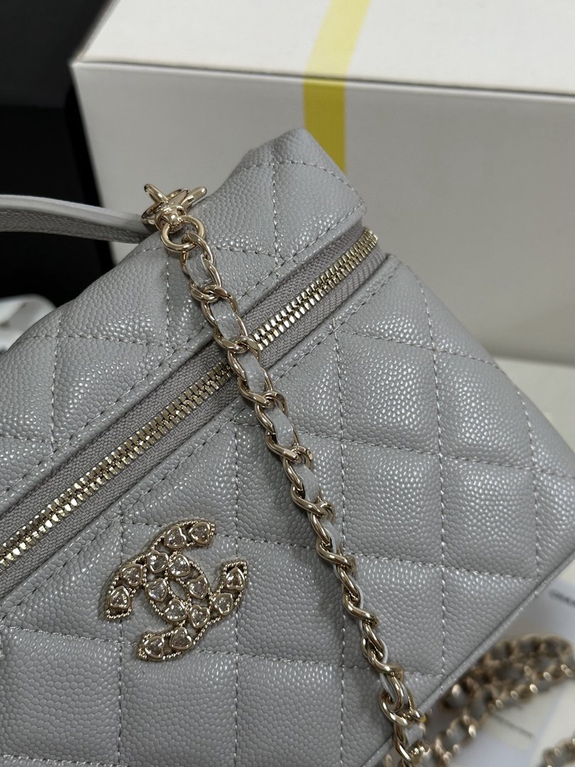 chanel 25p Vanity Case Heart rhinestones bag grey caviar calfskin gold hardware