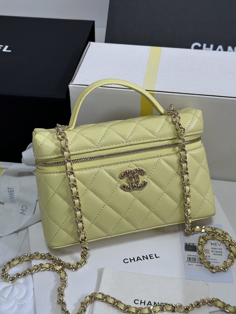 chanel 25p Vanity Case Heart rhinestones bag light yellow caviar calfskin gold hardware