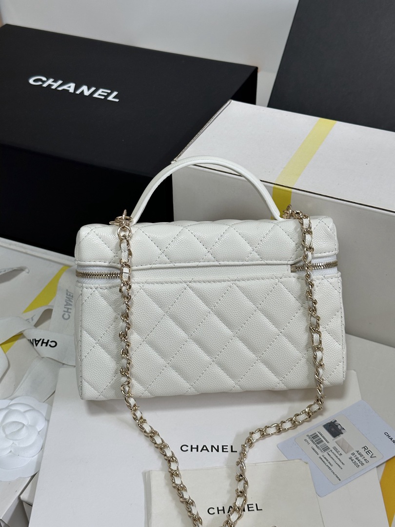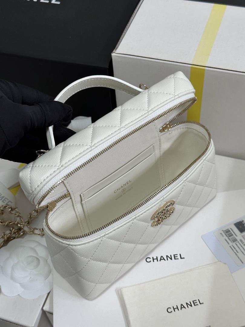 chanel 25p Vanity Case Heart rhinestones bag white caviar calfskin gold hardware