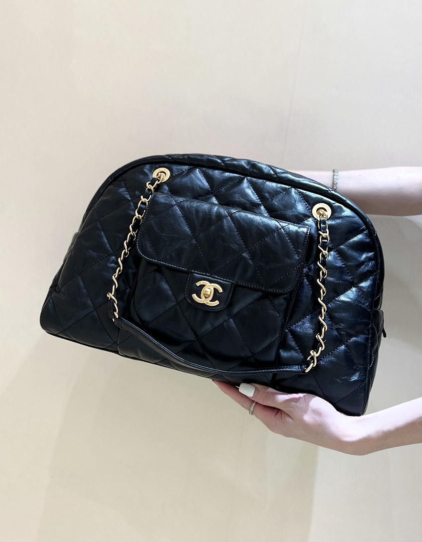 chanel 24a maxi bowling bag black aged calfskin gold hardware