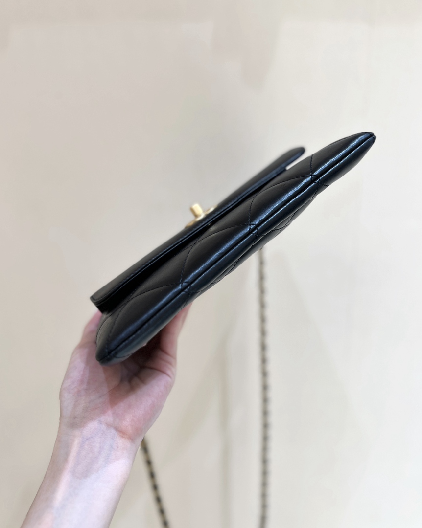 chanel 24b clutch bag black shiny lambskin gold hardware
