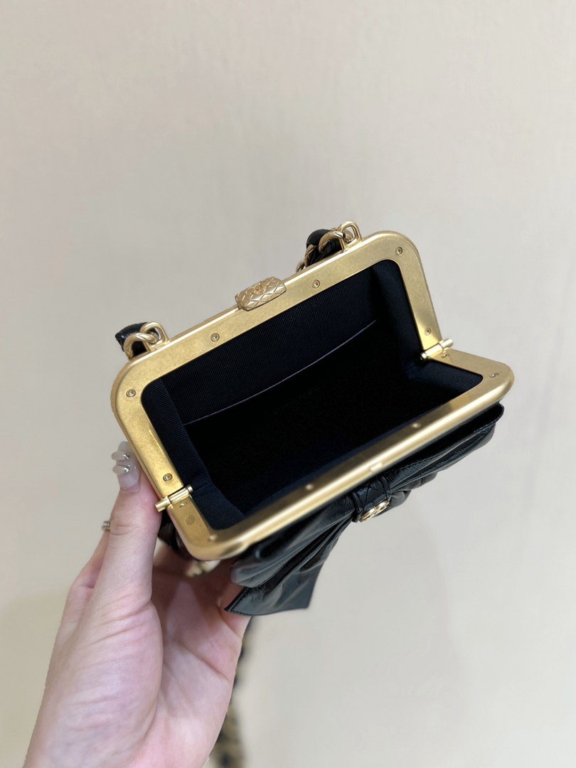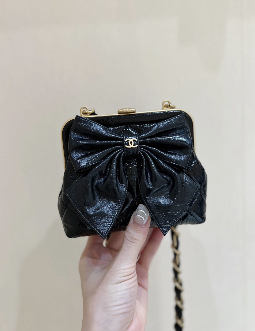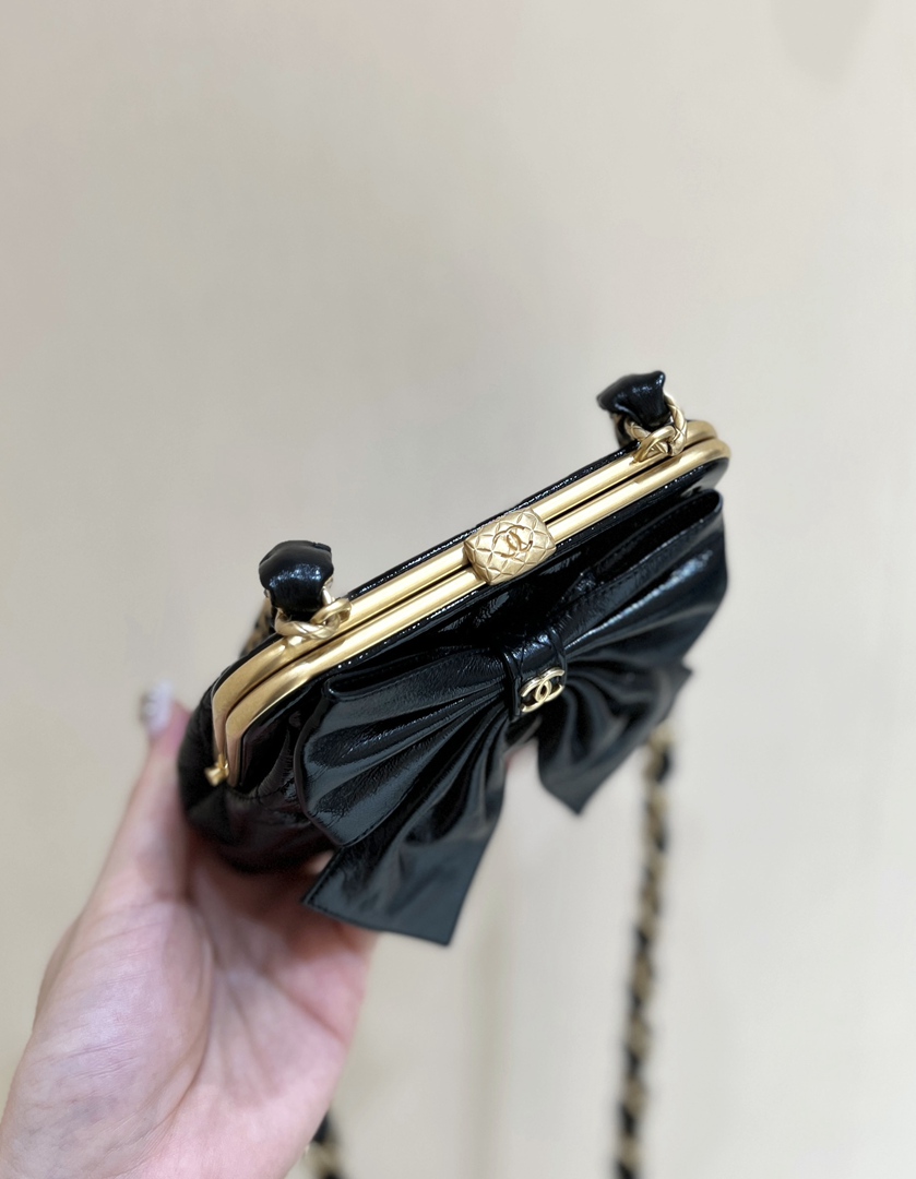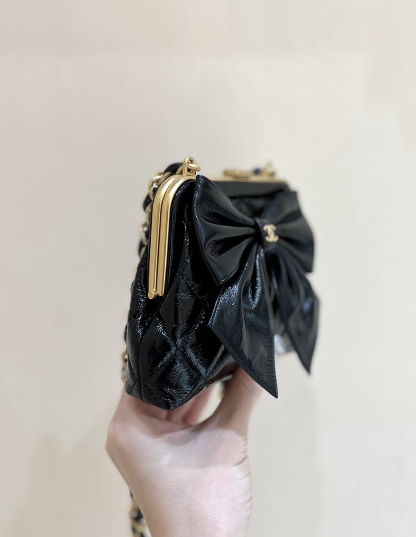 chanel 24a Bow Clip bag black shiny lambskin gold hardware