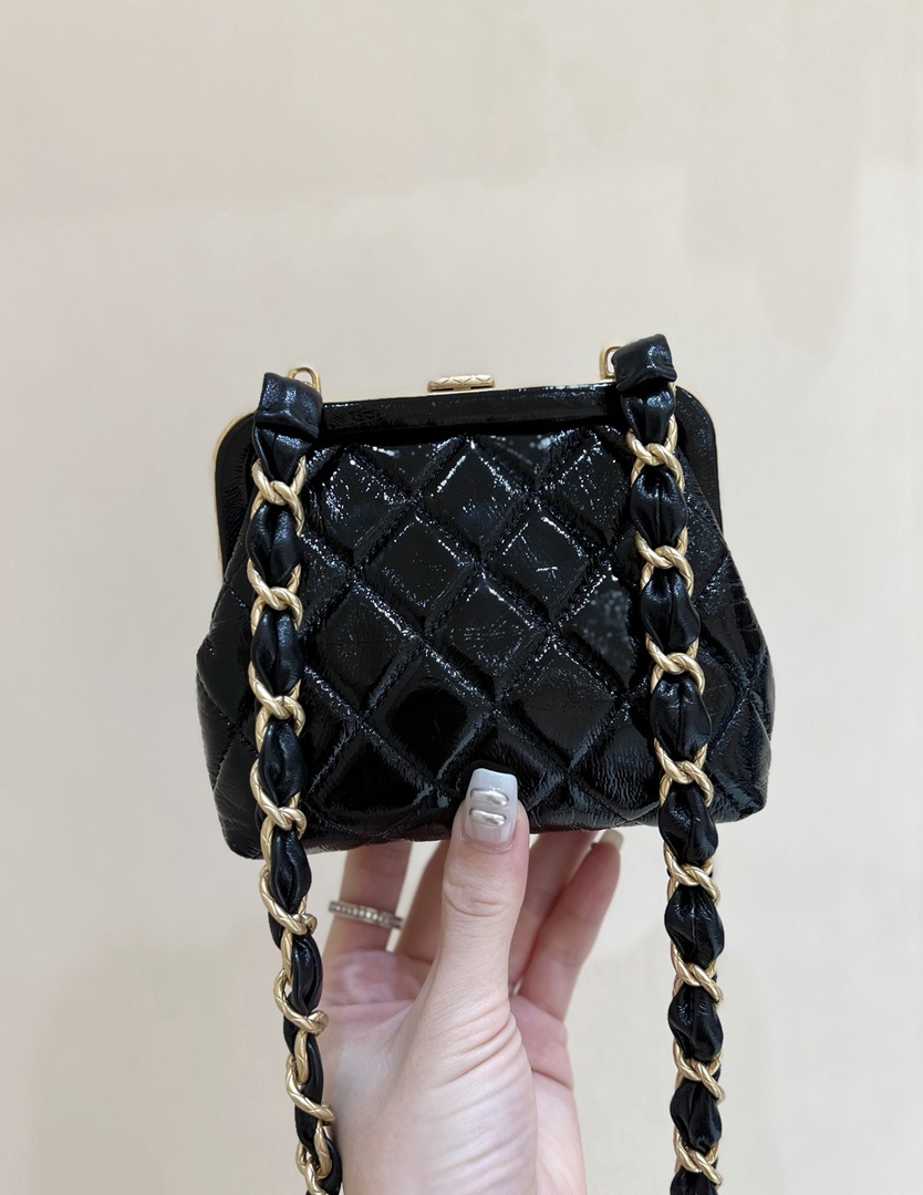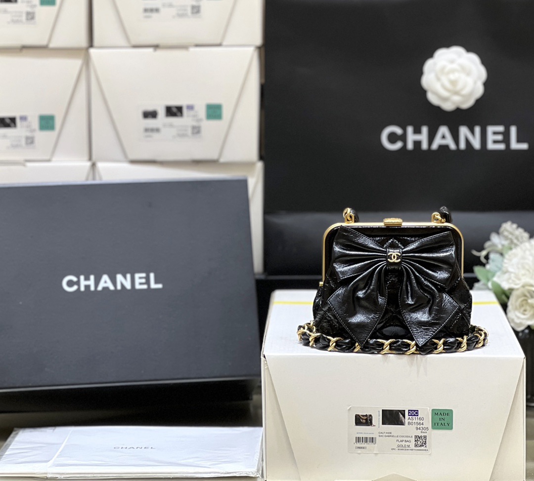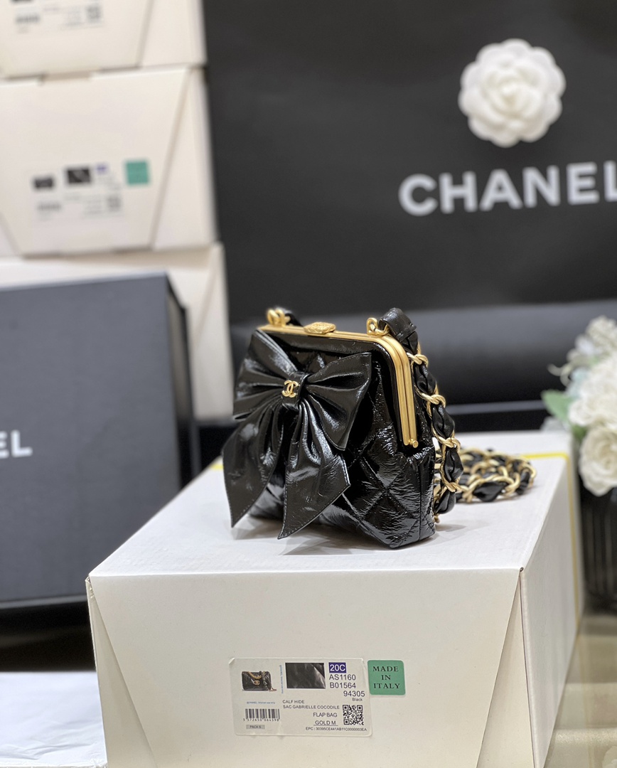 chanel 24a Bow Clip bag black shiny lambskin gold hardware