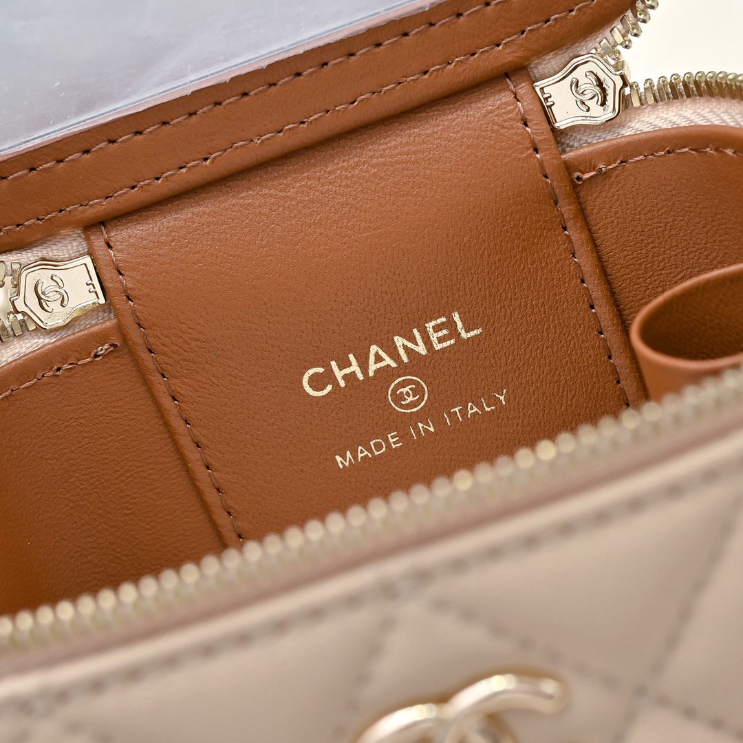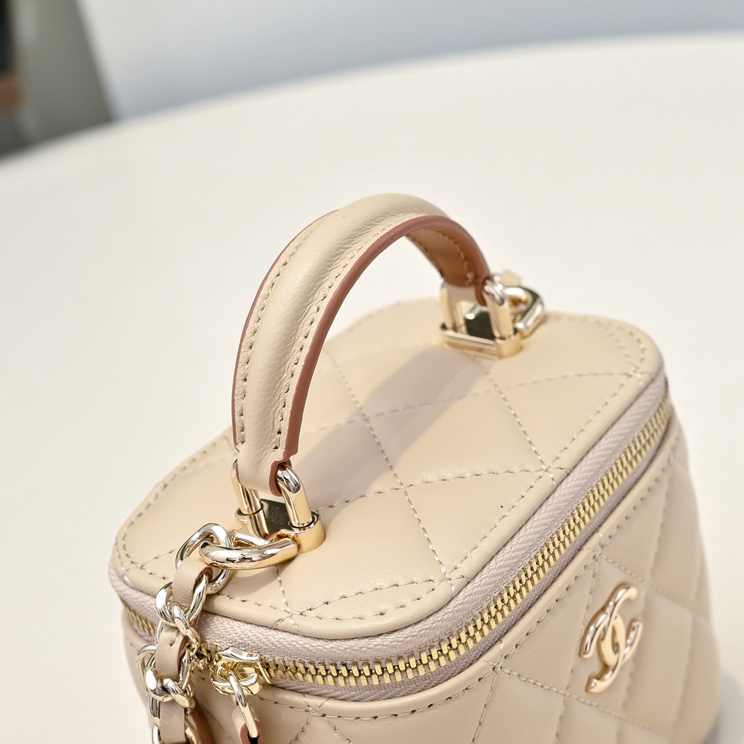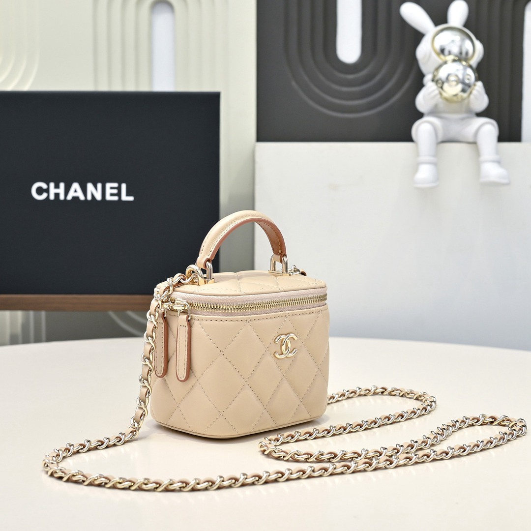 chanel mini vanity case bag apricot shiny lambskin gold hardware