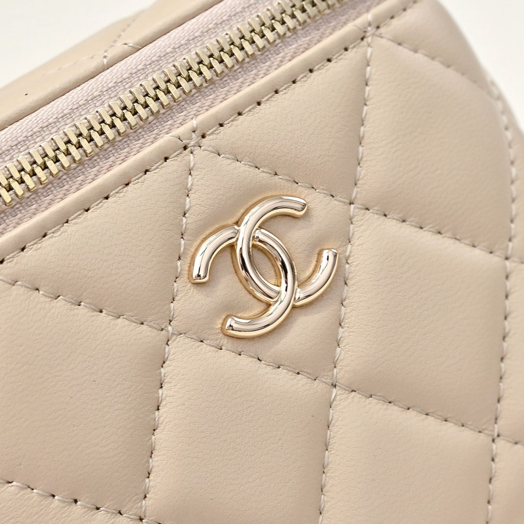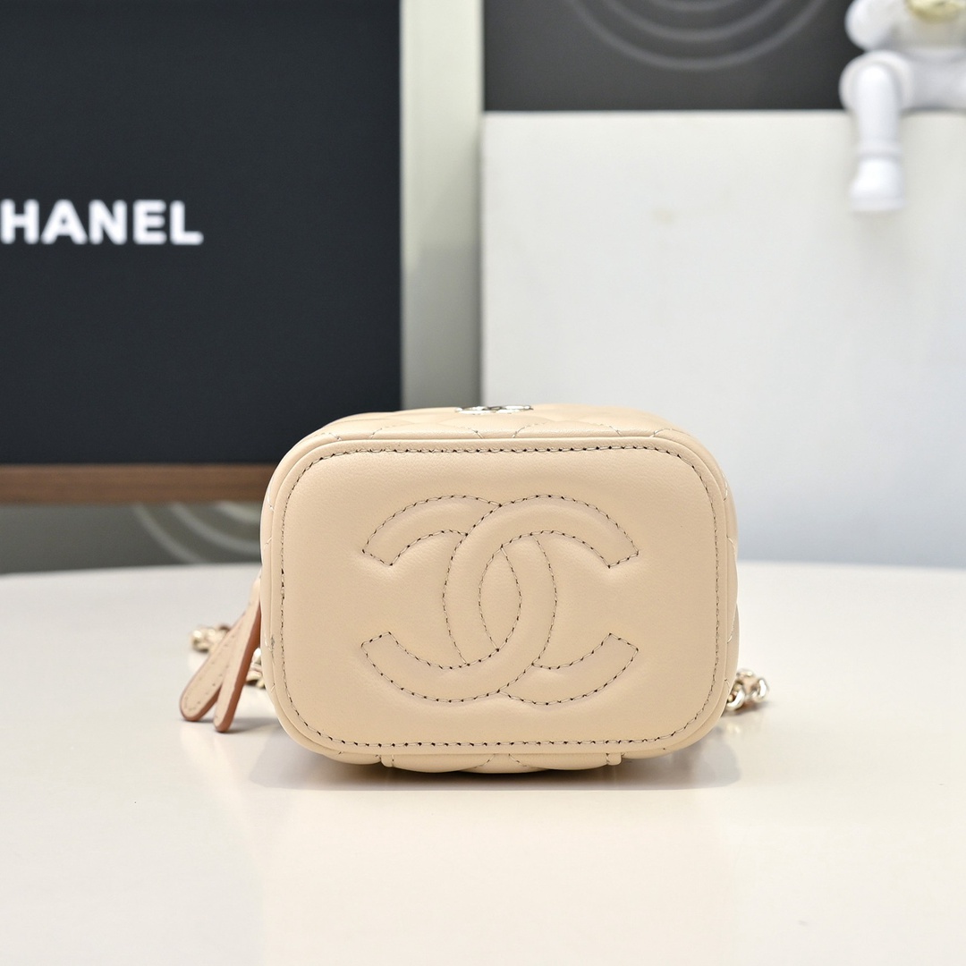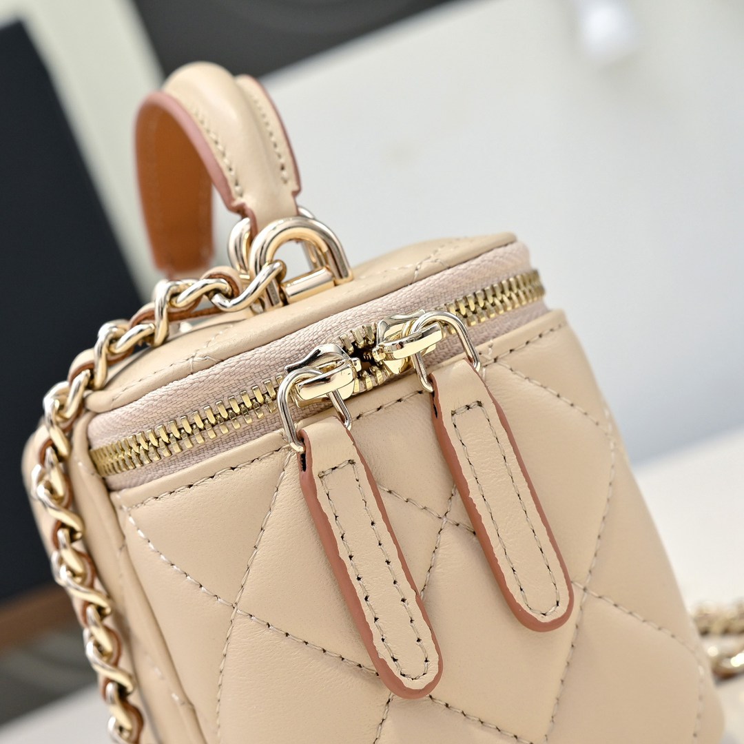 chanel mini vanity case bag apricot shiny lambskin gold hardware