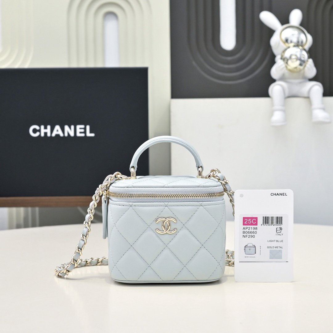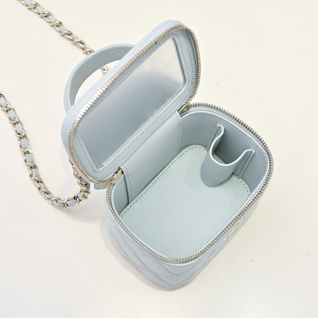 chanel mini vanity case bag light blue shiny lambskin gold hardware