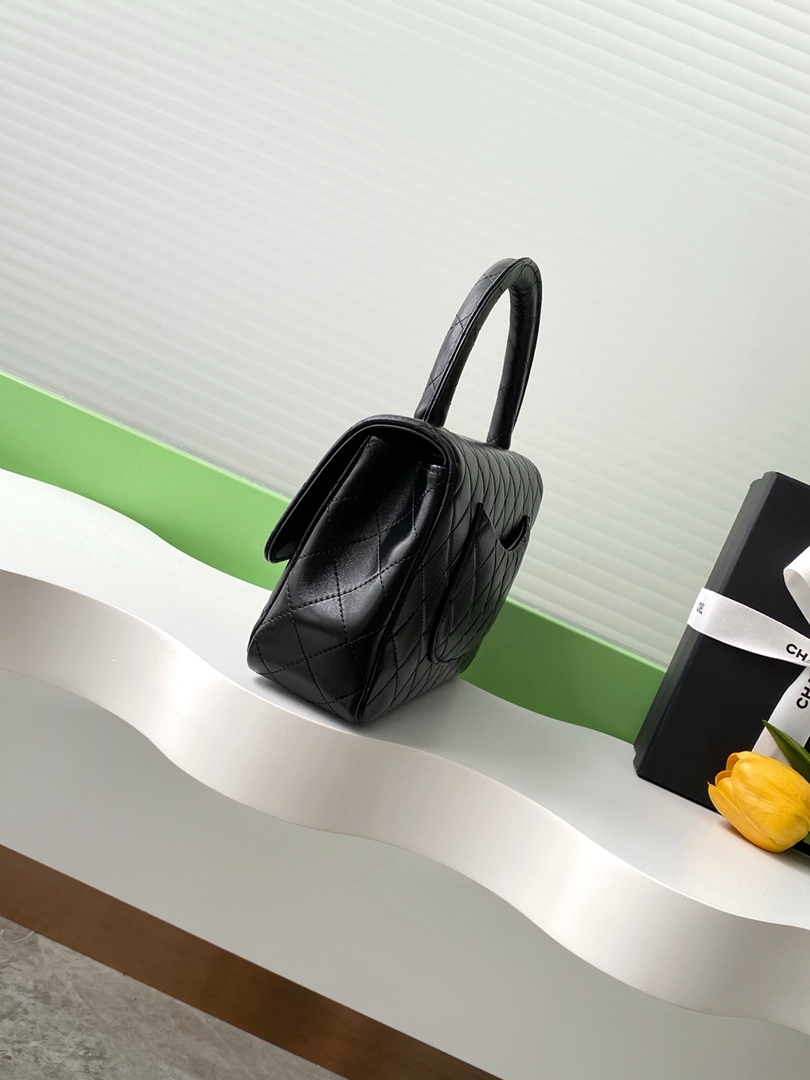 chanel Parent & Child Top Handle Bag black shiny lambskin gold hardware large