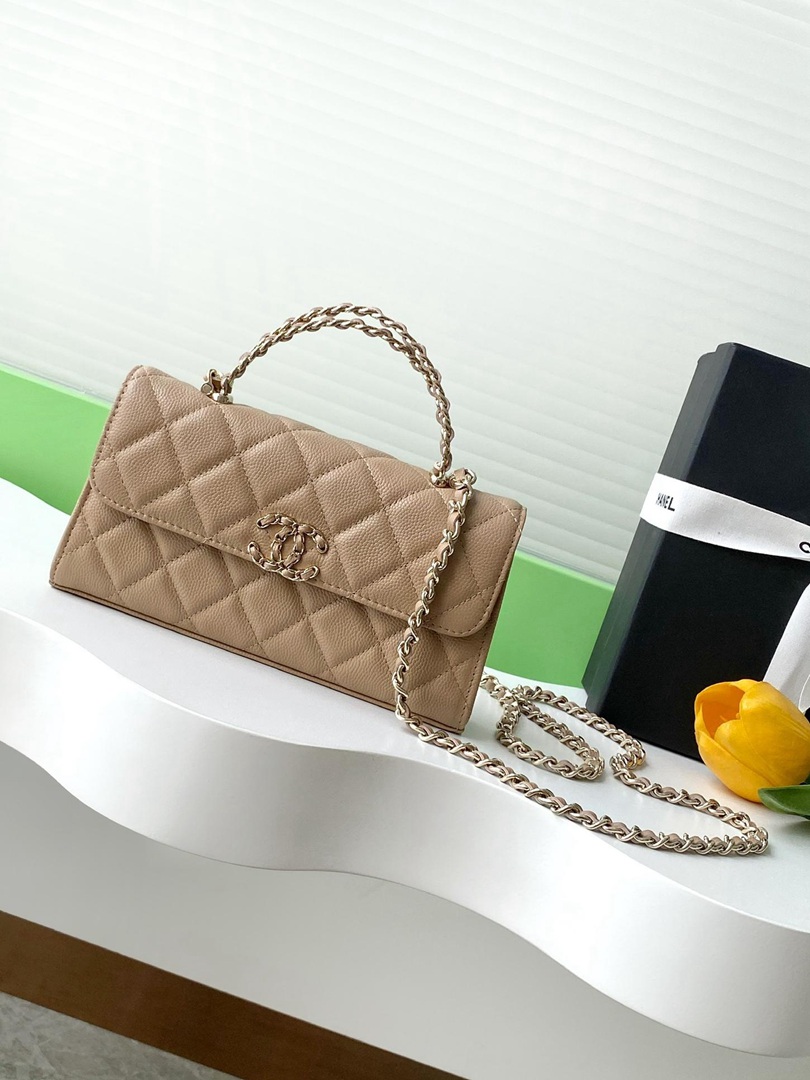 chanel 25a Cross handle horizontal kelly bag lignt apricot grained calfskin sliver hardware