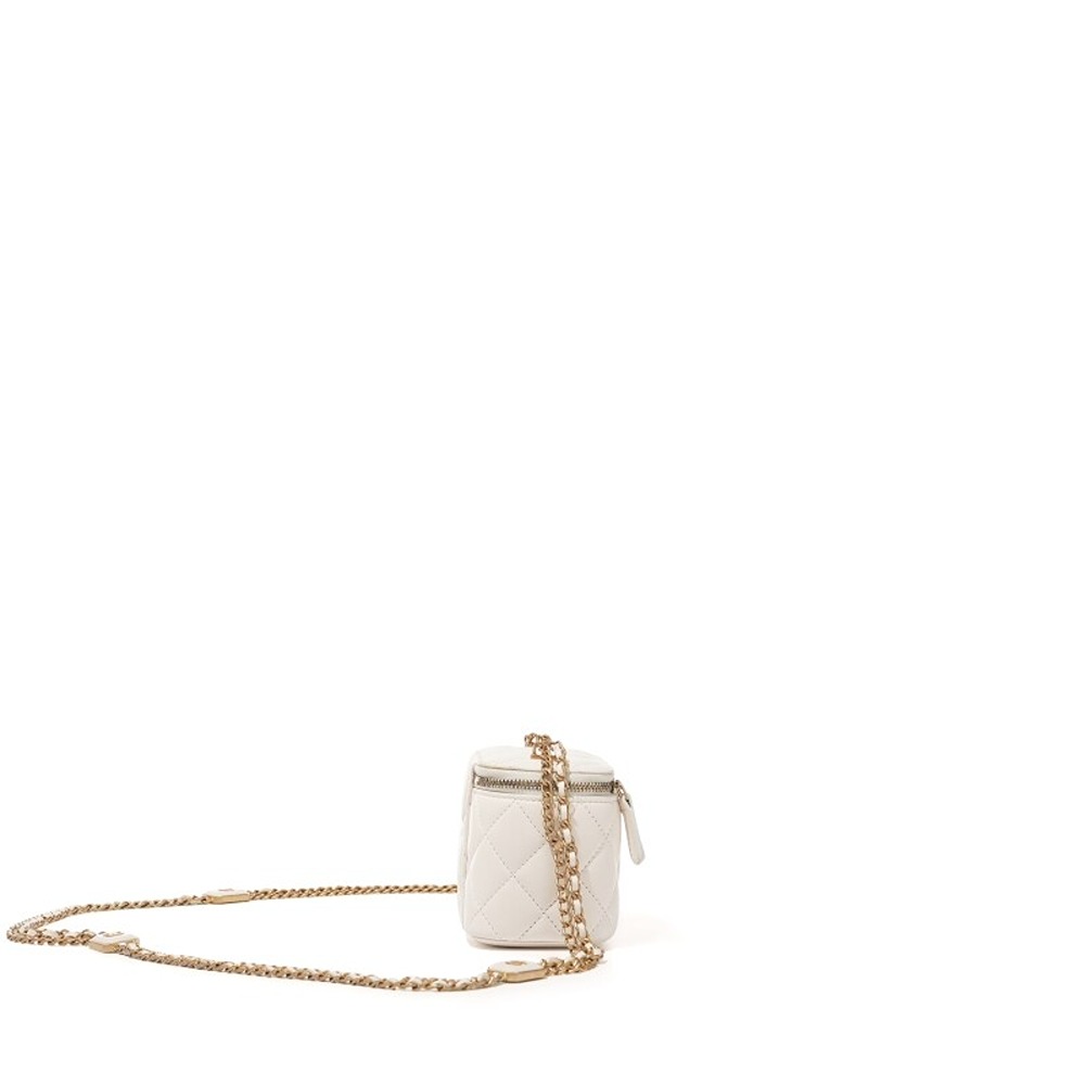 Chanel Mini Ball Crush Vanity with Chain in White Lambskin