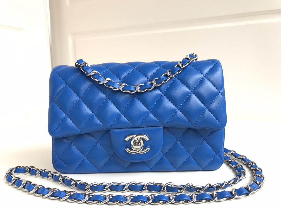 chanel cf Royal Blue shiny lambskin sliver hardware