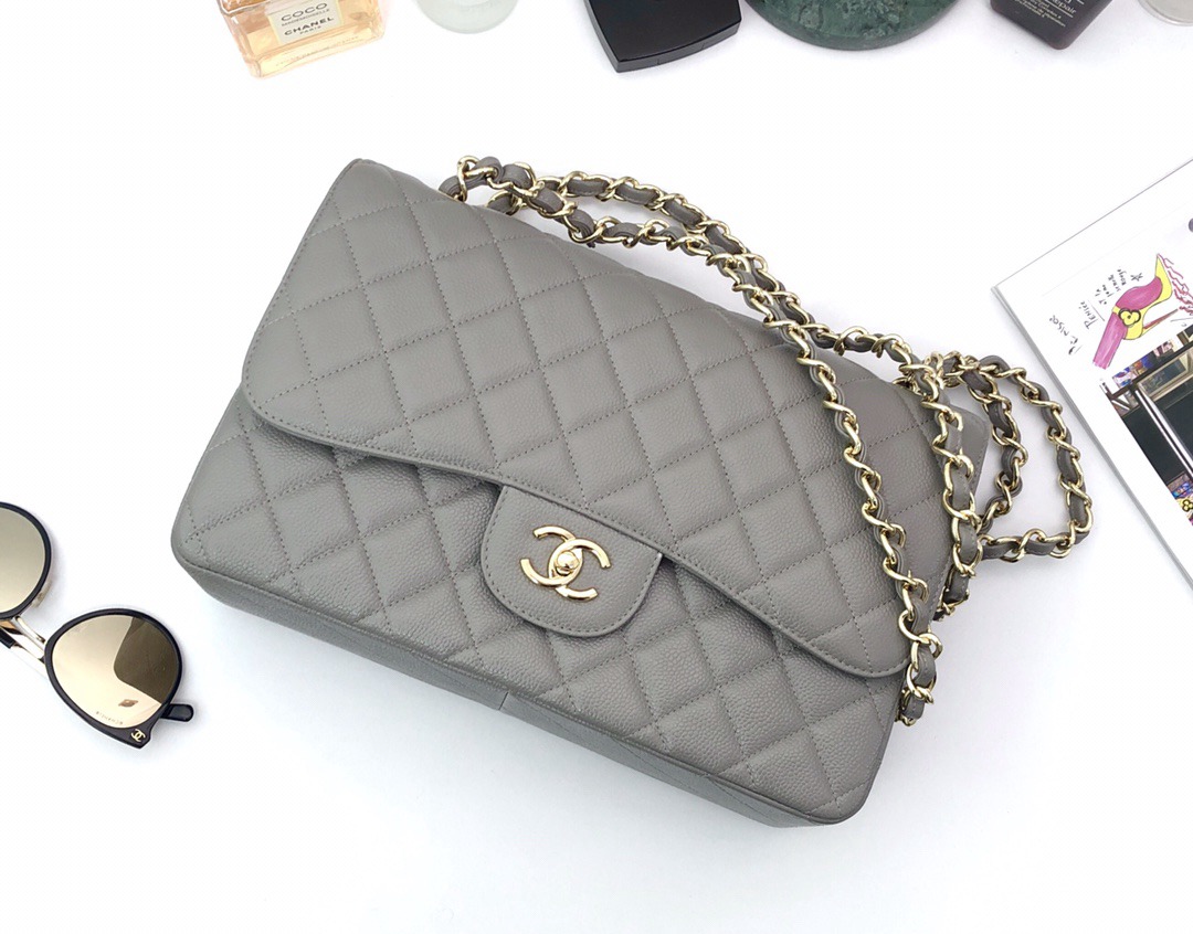 chanel cf Dark Grey Caviar calfskin gold hardware