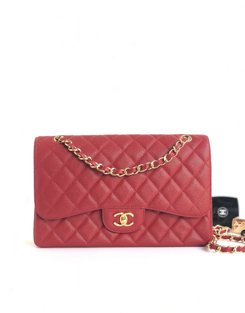 chanel cf red Caviar calfskin gold hardware