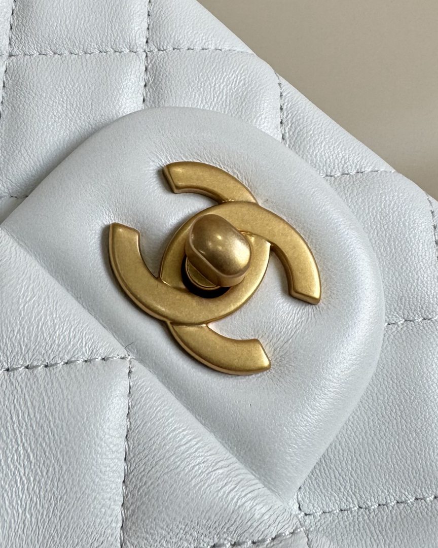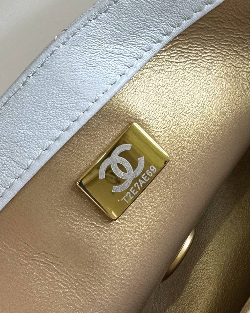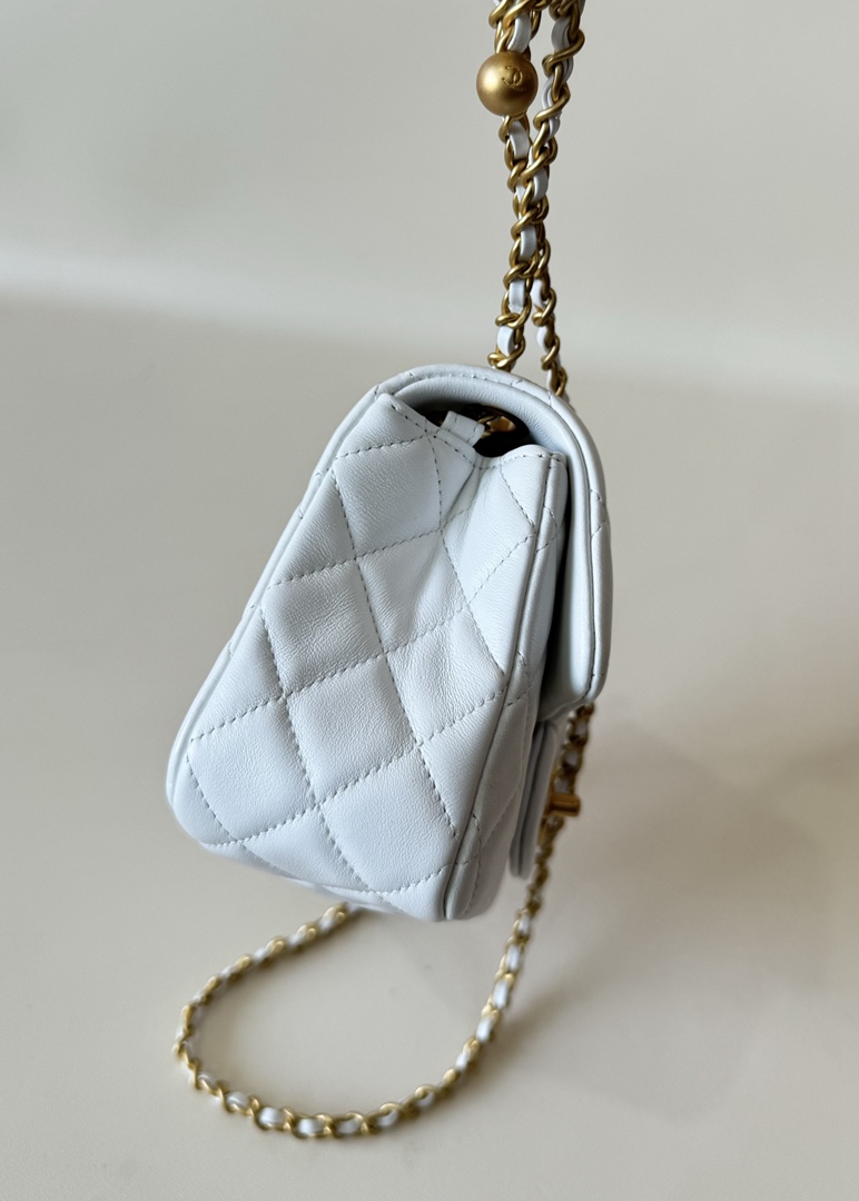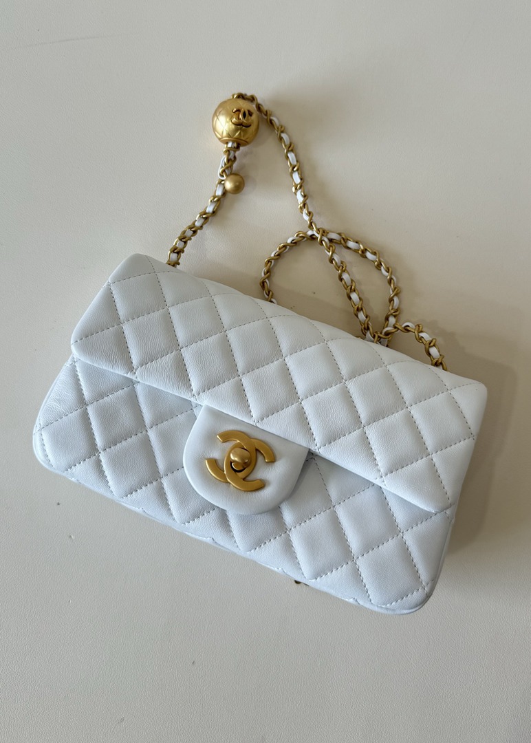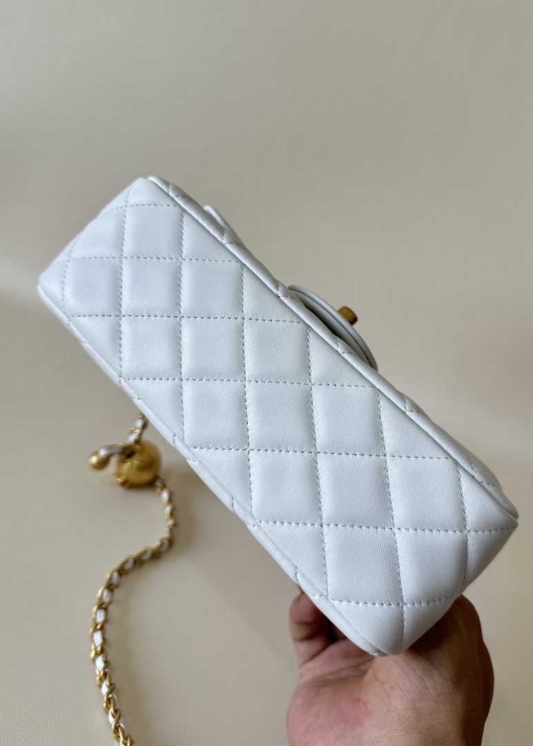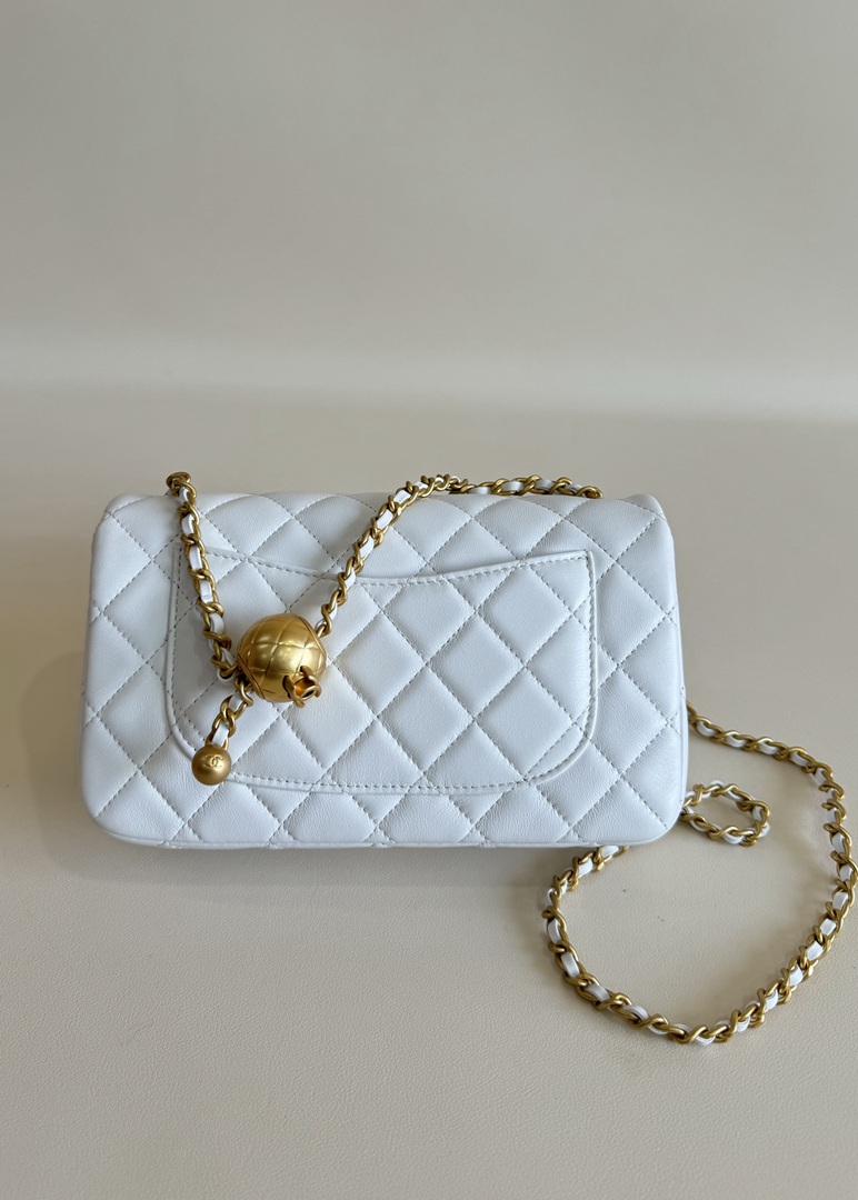 chanel 2020 Golden Globe mini cf white shiny lambskin gold hardware