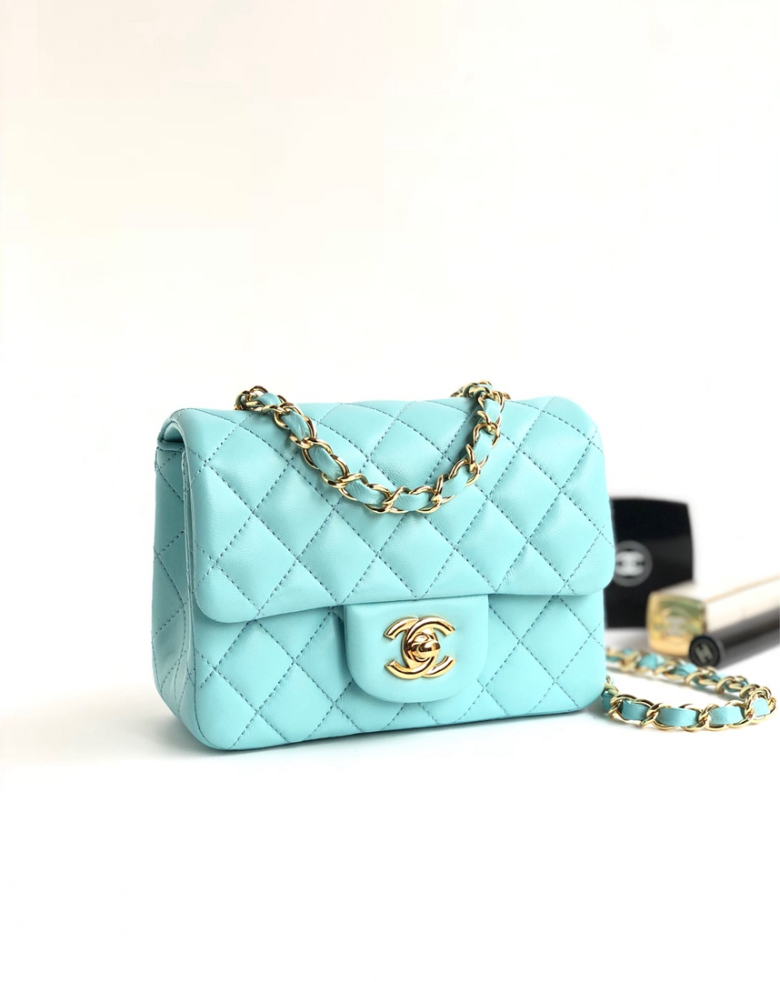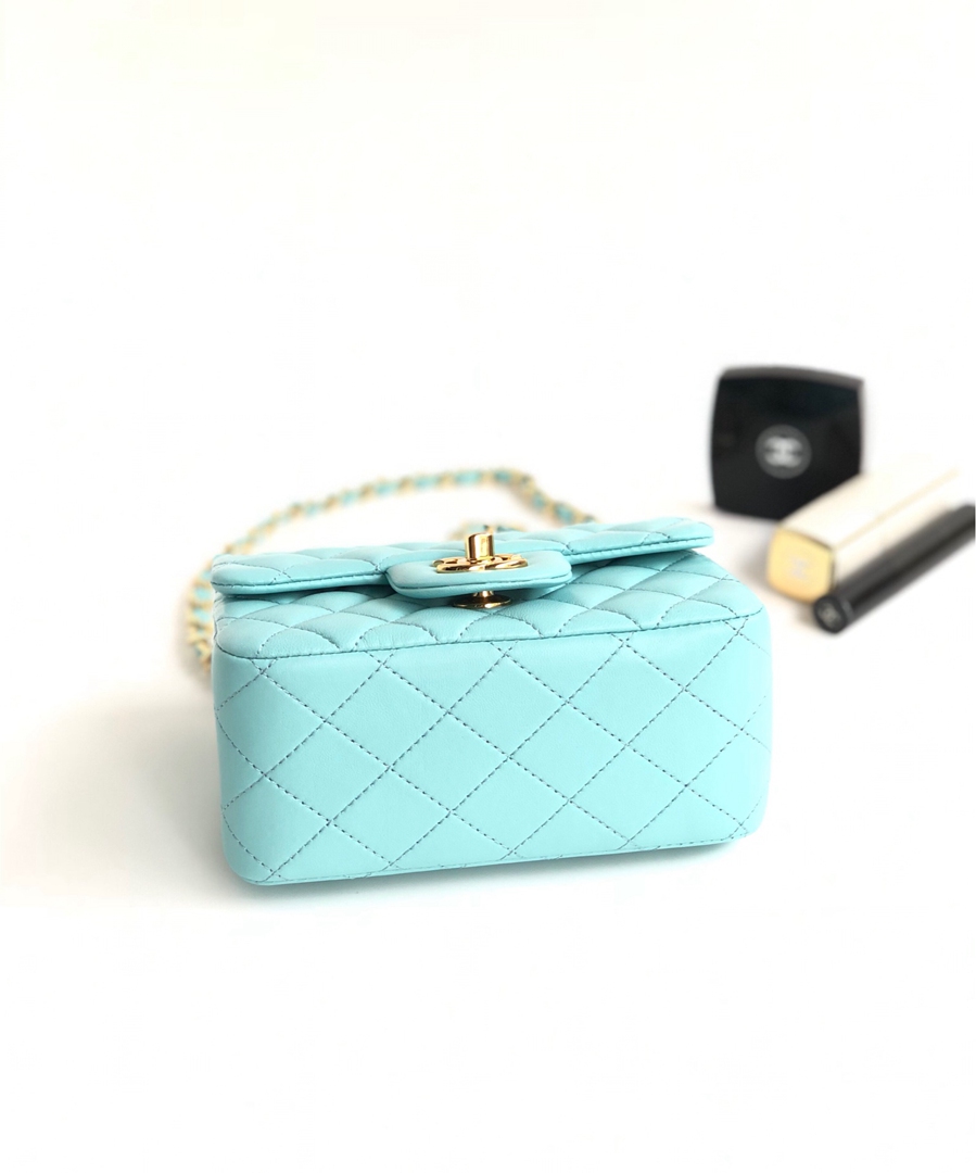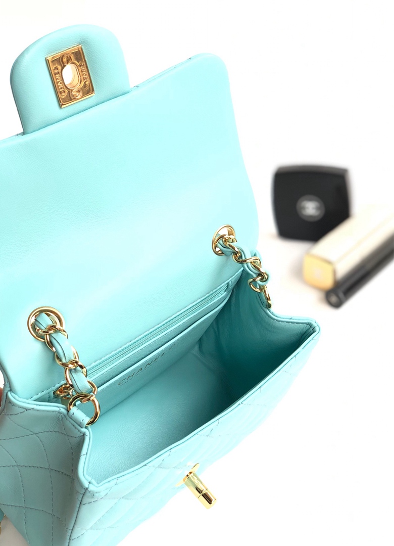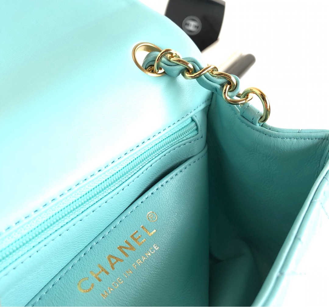 chanel mini cf Tiffany Blue shiny lambskin gold hardware