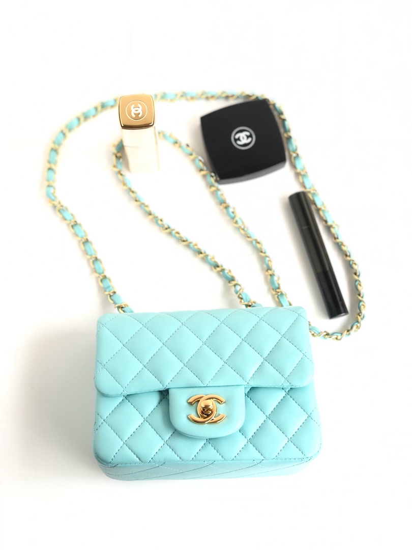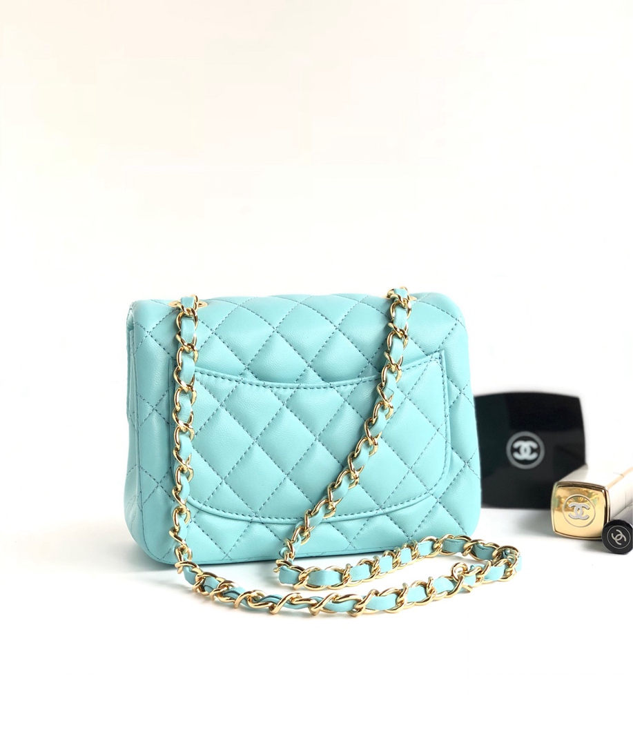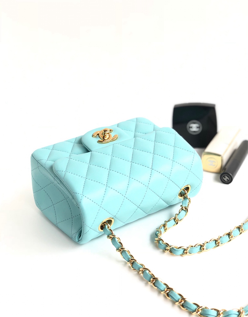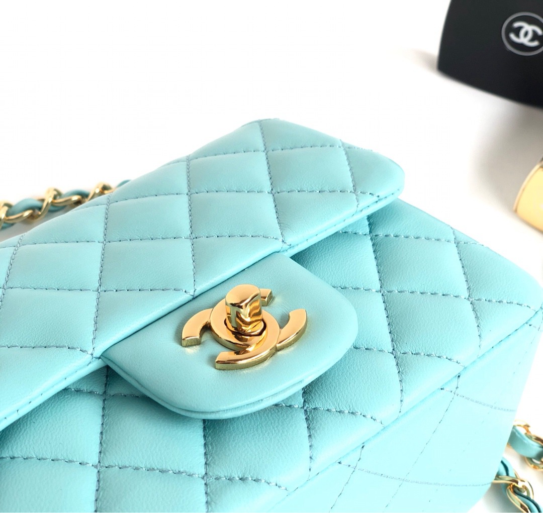 chanel mini cf Tiffany Blue shiny lambskin gold hardware