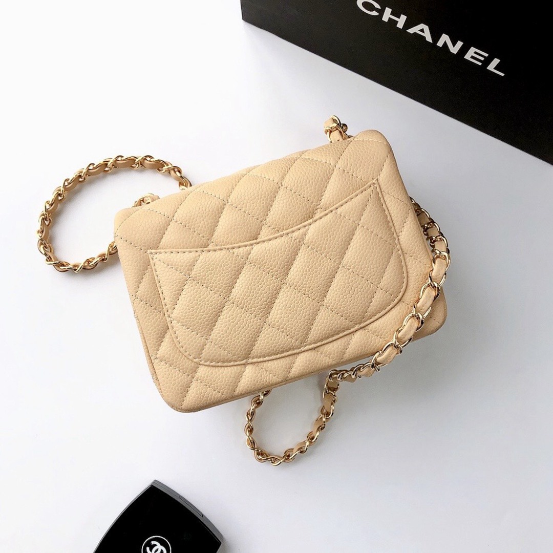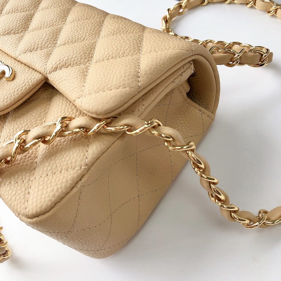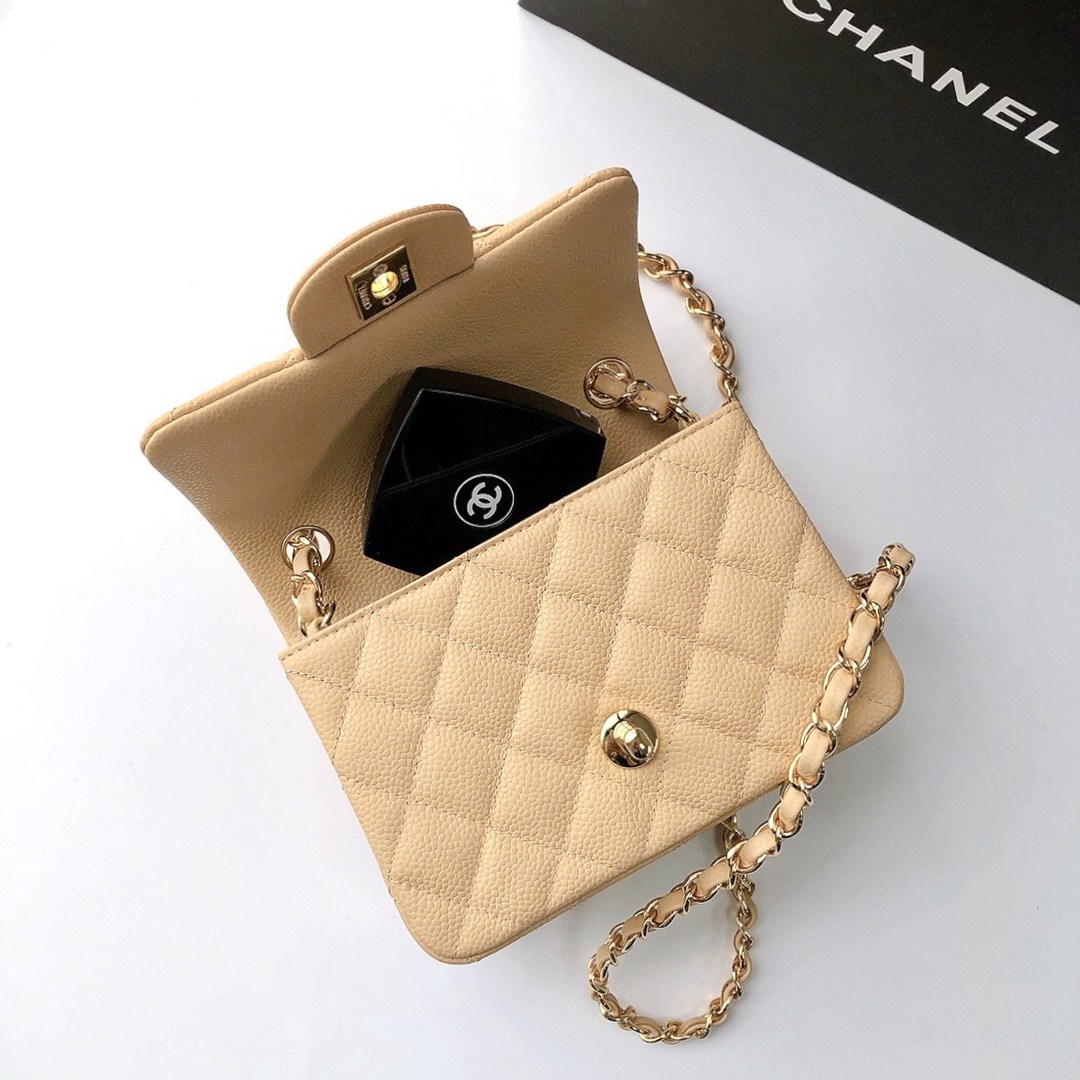 chanel mini cf beige Caviar calfskin gold hardware