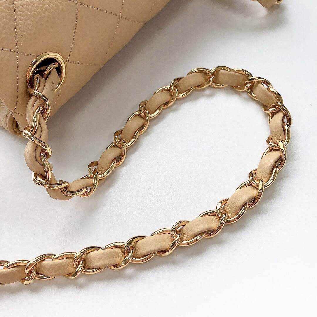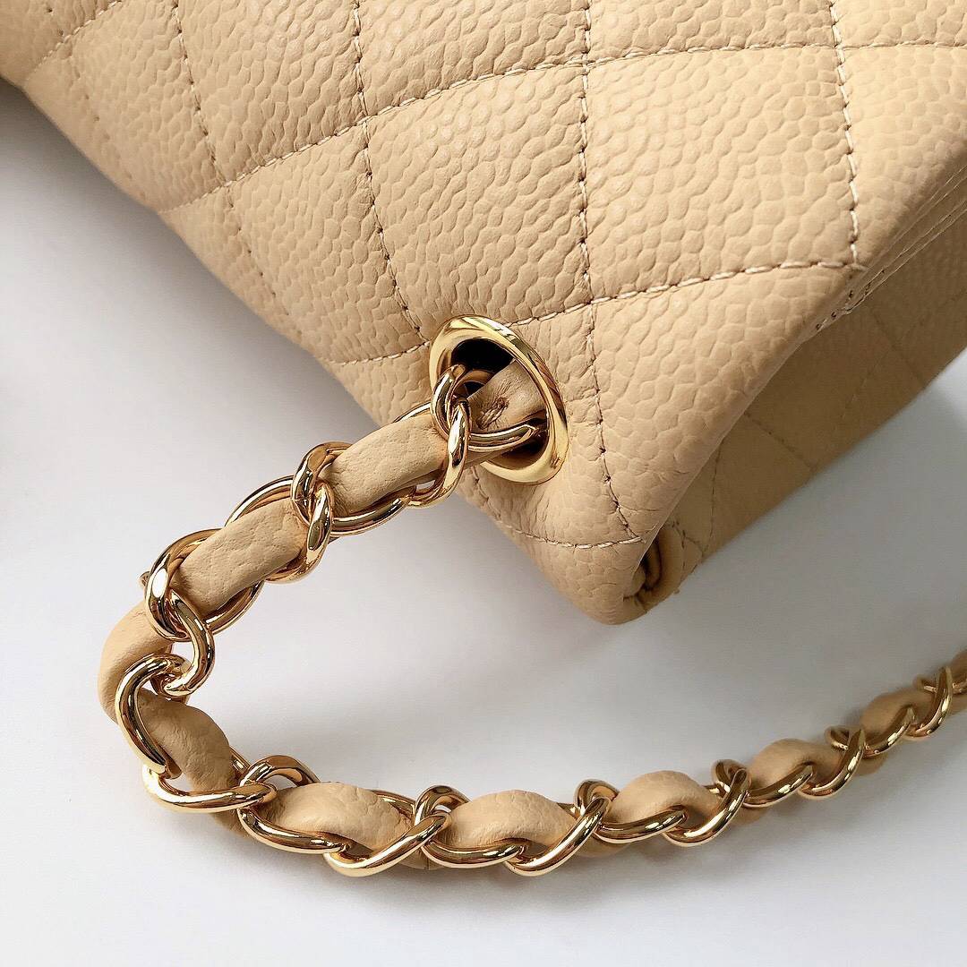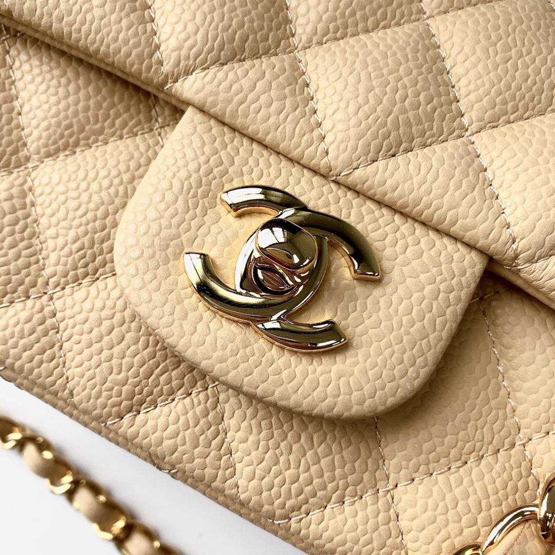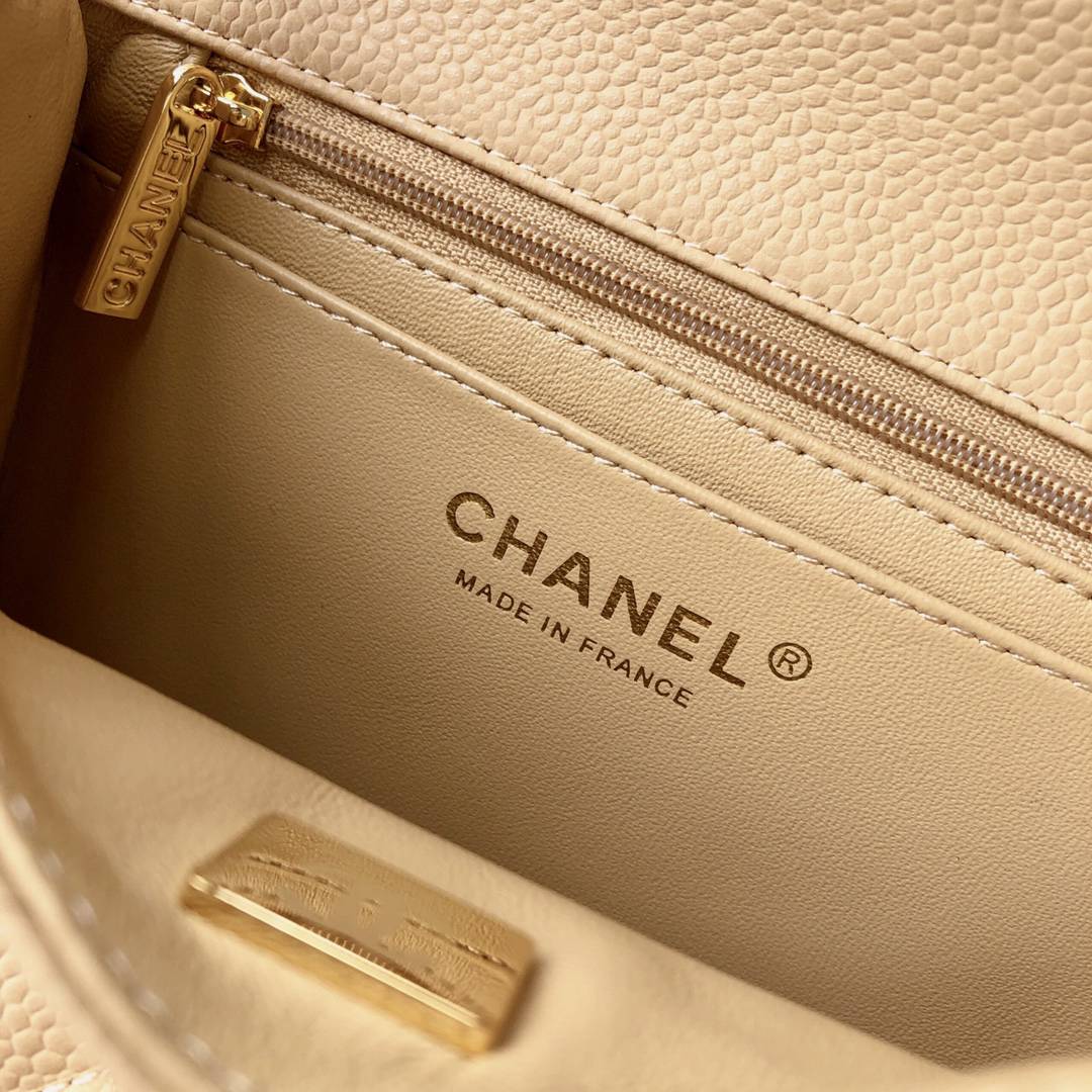 chanel mini cf beige Caviar calfskin gold hardware